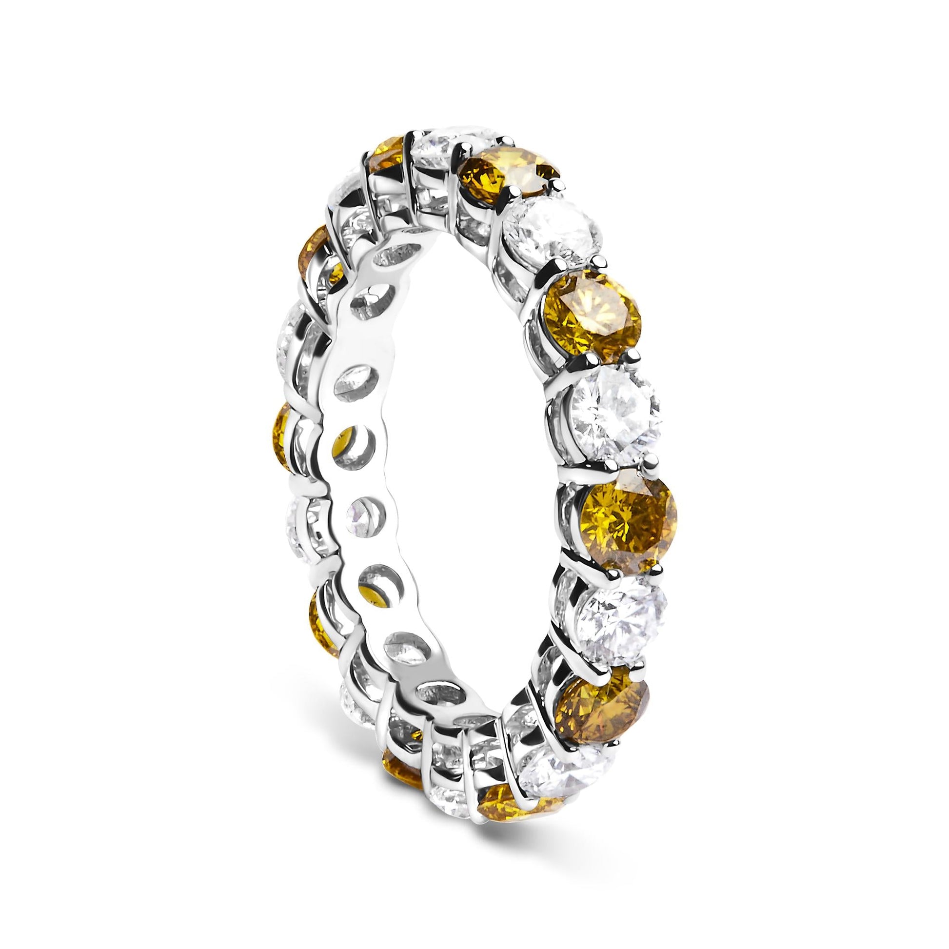 14K White Gold 3.00 Cttw Alternating White and Yellow Lab-Grown Diamond Eternity Band Ring (F-G Color, VS1-VS2 Clarity)
