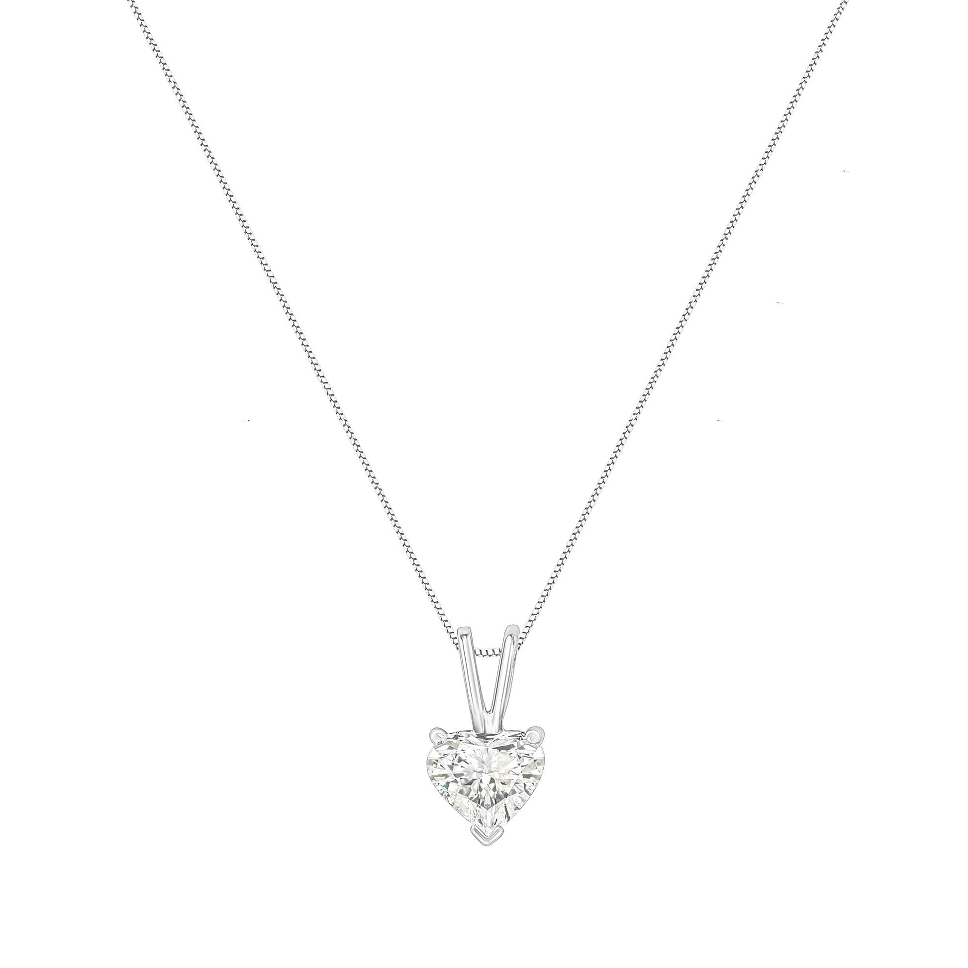An elegant heart-shaped diamond is the brilliant focal point of this solitaire necklace for her. Set in 14K white gold, the diamond suspends from an 18-inch cable chain that secures with a spring ring. The simplicity of a perfect diamond will outlast every other piece you own. A brilliantly cut heart shaped diamond emanates pure elegance and love in its gold setting. Goes with anything you care to pair it with – another reason why you'll never want to take this one off. This sweet necklace makes a perfect Valentine's Day gift, or as a way to remember someone close to your heart. It's a classic and feminine piece she'll want to show off every day.