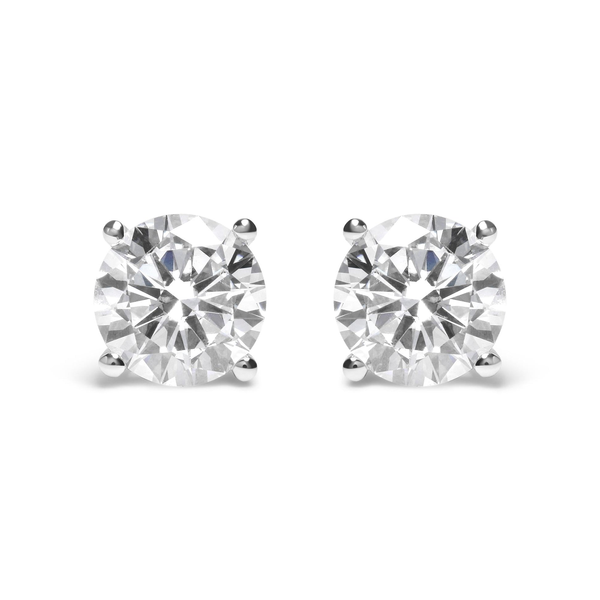 Add a touch of elegance and sophistication to your wardrobe with these classic round brilliant-cut lab-grown diamond stud earrings. Crafted from luxurious 14K white gold, these earrings showcase a total weight of 4.00 cttw of lab-grown diamonds, boasting impeccable G-H color and VS1-VS2 clarity. Expertly set in a 4-prong setting, each diamond is secured with screw backs, ensuring their safety and longevity. These lab-grown round diamond studs will effortlessly elevate any outfit, from casual to formal, making them a versatile and essential addition to your jewelry collection. These earrings are perfect for gift-giving or for treating yourself to a timeless treasure. Don't miss out on the opportunity to own these stunning pieces of jewelry.