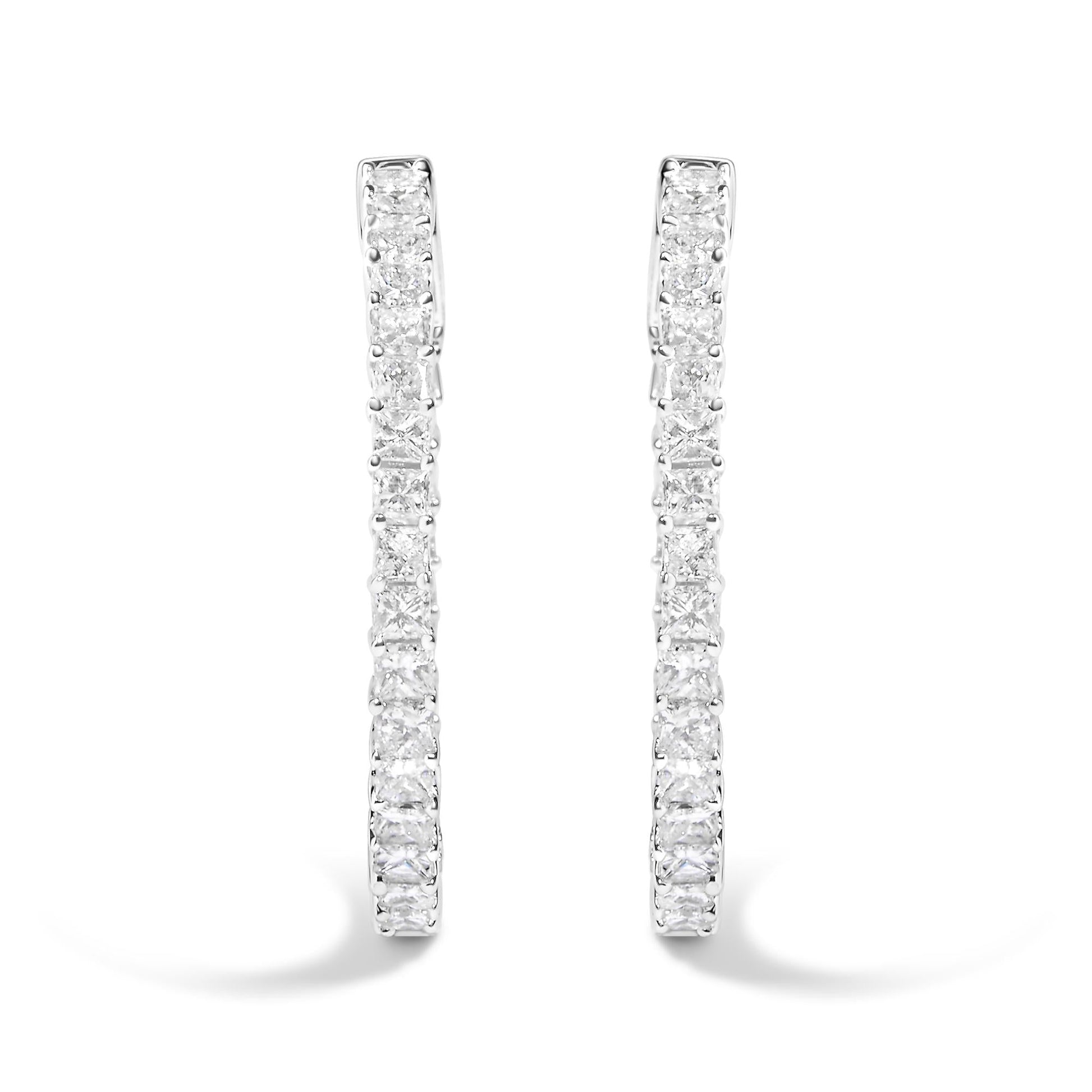 14K White Gold Natural Princess Cut Diamond Inside Out Hoop Earrings (G-H Color, SI2-I1 Clarity)