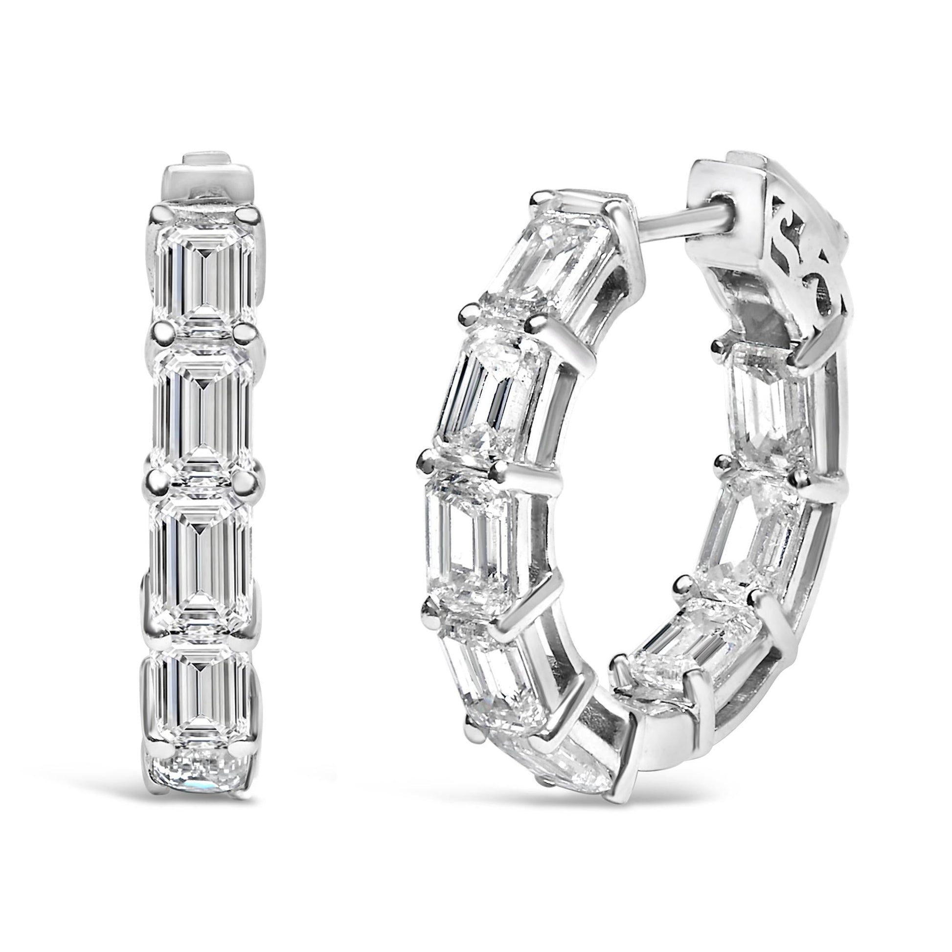 14K White Gold 5 1/10 Cttw Emerald Cut Lab Grown Diamond Inside Out Hoop Earrings