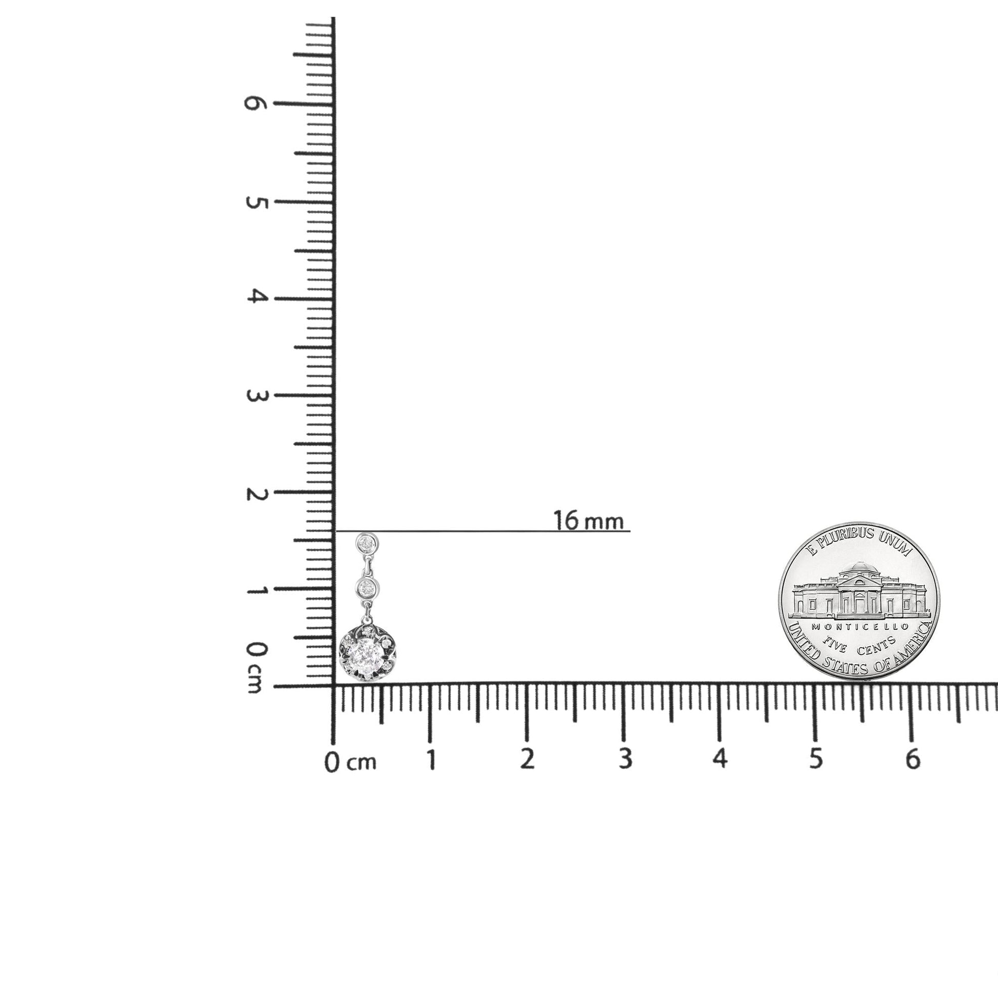 14k White Gold 5/8 Cttw Diamond Halo Drop and Dangle Earrings Stud with Bale (I-J Color, I1-I2 Clarity)