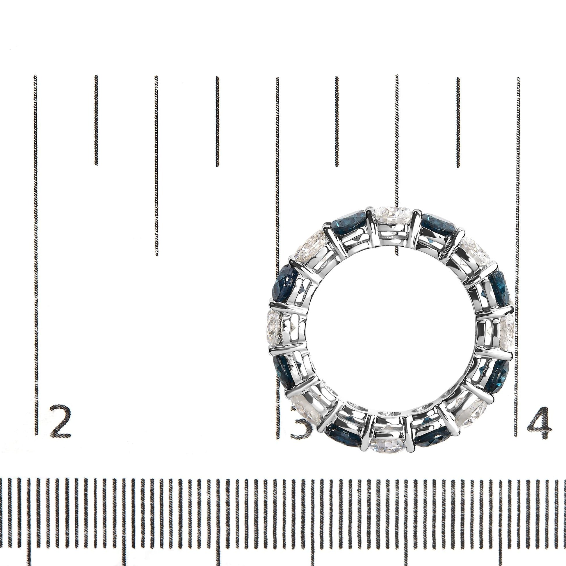 14K White Gold 6 1/4 Cttw Alternating Lab-Grown White and Natural Treated Blue Diamond Eternity Band Ring (F-G Color, VS1-VS2 Clarity) - Ring Size 7.5