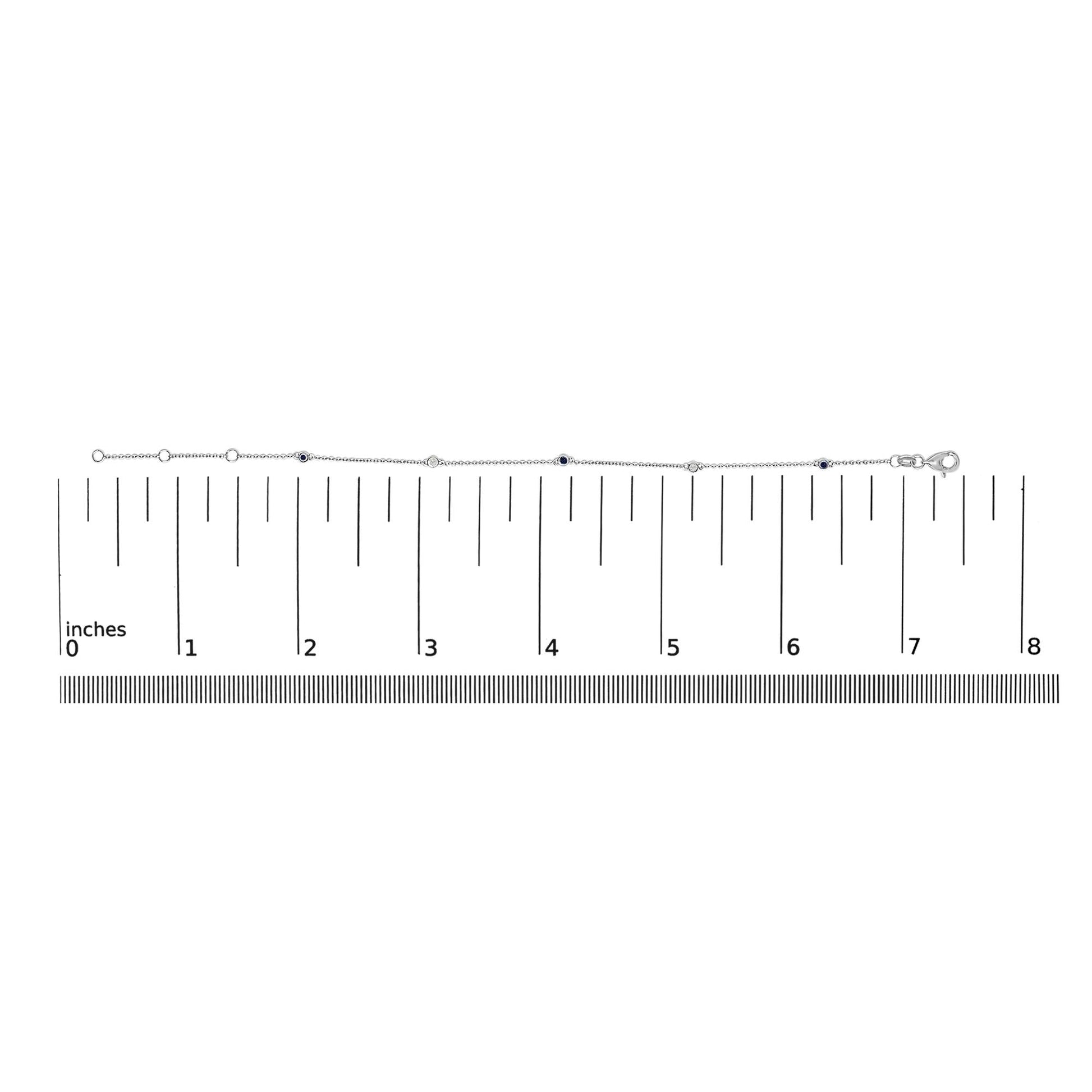 14K White Gold Alternating Blue Sapphire and Diamond Bezel Station Chain Bracelet - Size 7.5 inch