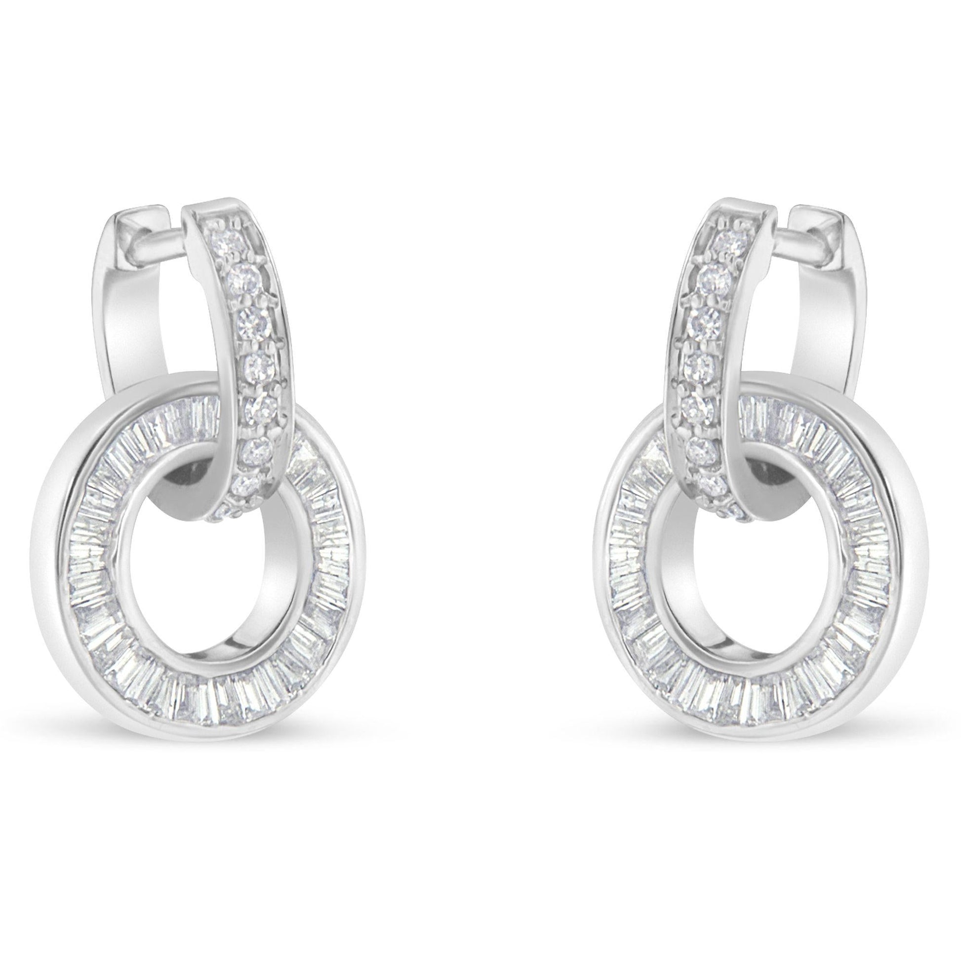 14k White Gold Round and Baguette Cut Diamond Earrings (1 cttw, G-H Color, SI1-SI2 Clarity)