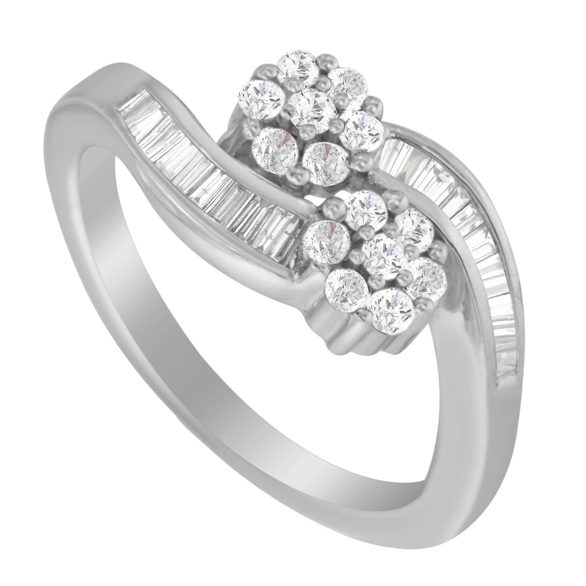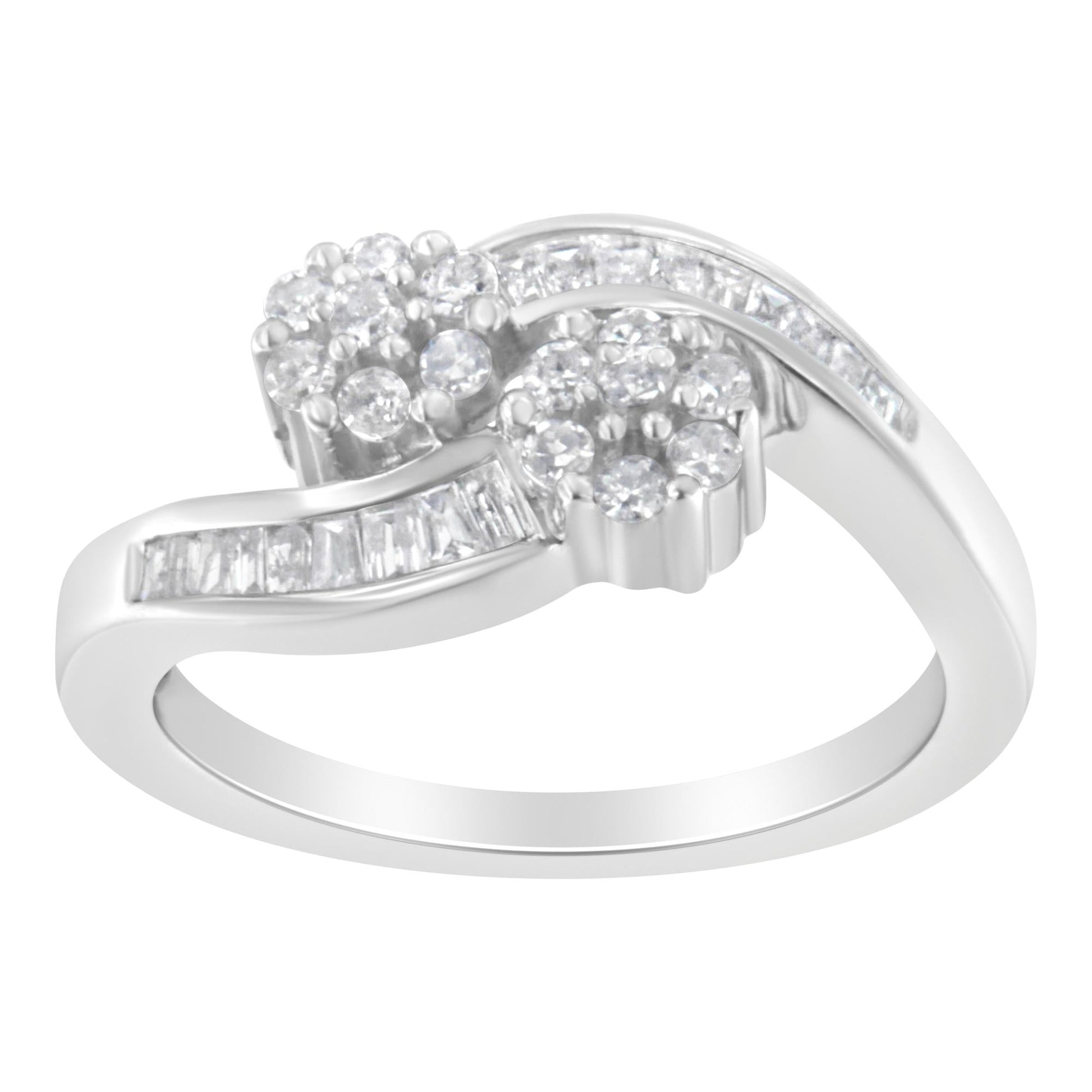 14K White Gold Round and Baguette Diamond Bypass Ring (1/2 cttw, H-I Color, I1-I2 Clarity)