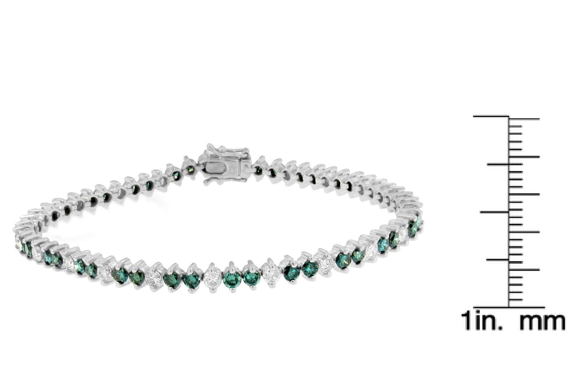 14K White Gold Round-Cut white and Blue Diamond Fashion Bracelet (5.40 cttw, H-I Color, I1-I2 Clarity)