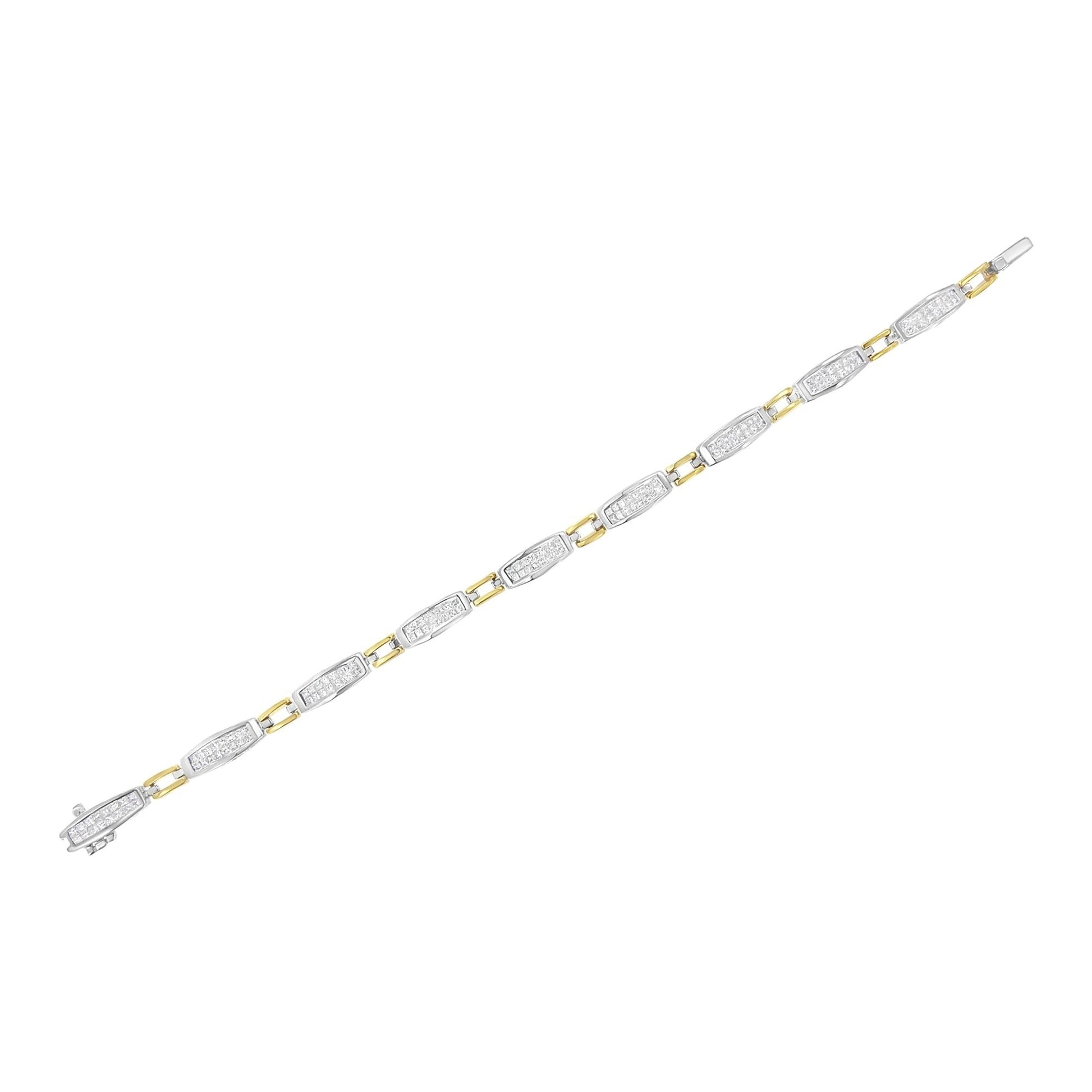 14K Yellow and White Gold 2.0 Cttw Princess Cut Diamond Tapered and Equal Sign Link Bracelet (G-H Color, SI1-SI2 Clarity) - 7"