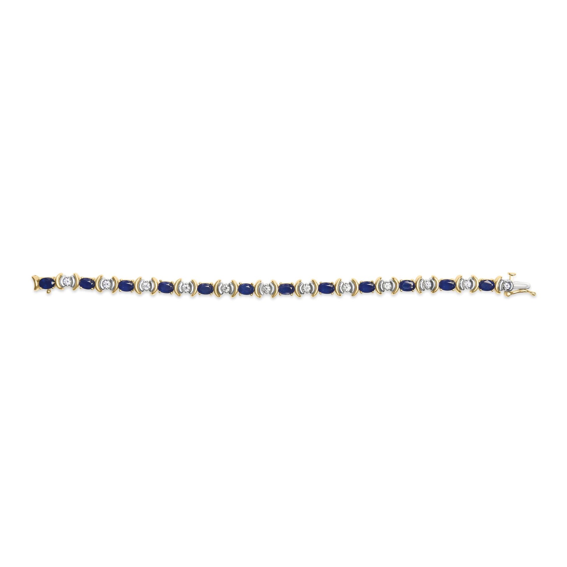 14K Yellow Gold 1.00 Cttw Alternating Diamond and 6 1/2 Cttw Oval Blue Sapphire Link Bracelet (H-I Color, SI1-SI2 Clarity) - 7" Inches