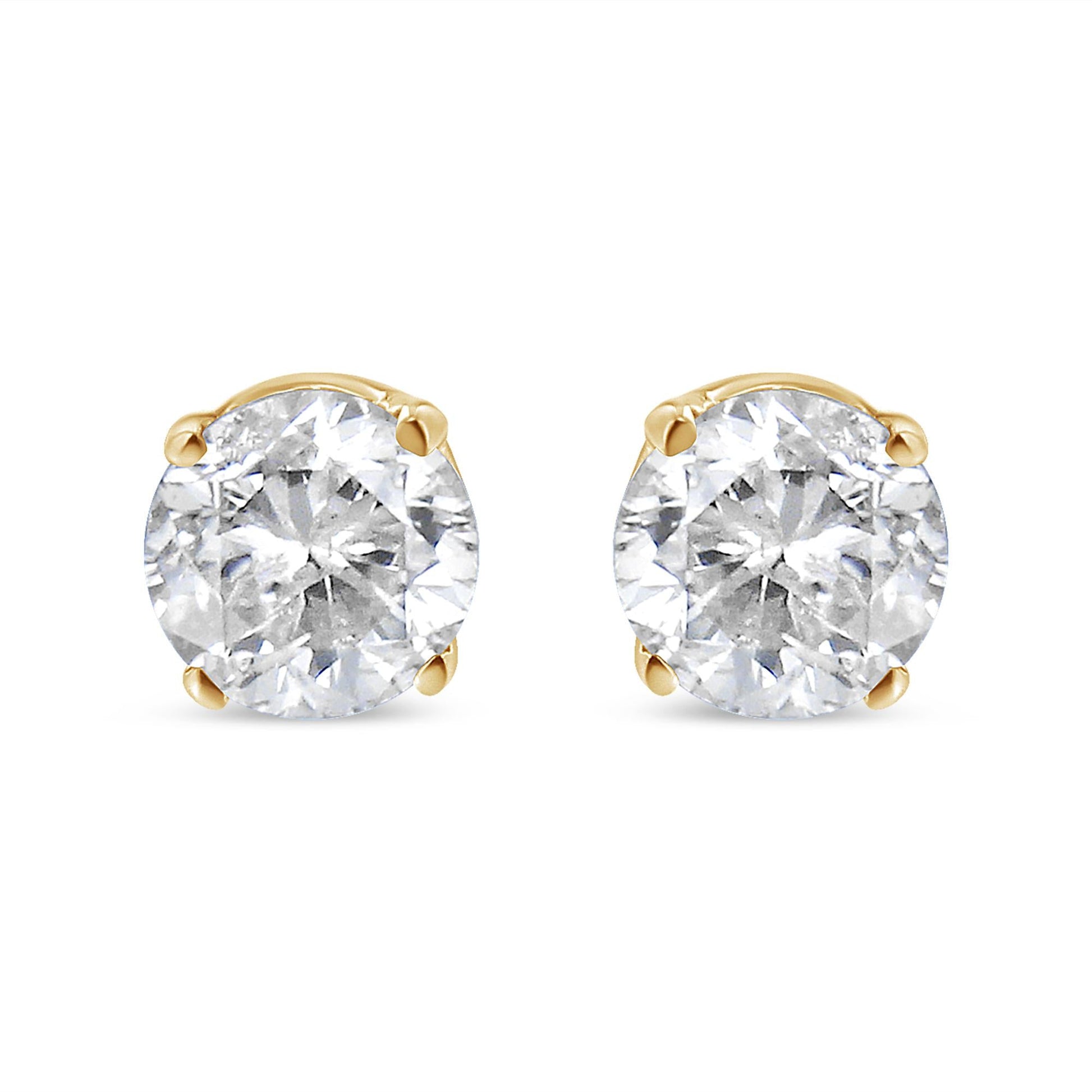 You can never go wrong with these classic 14k yellow gold stud earrings. Each earring features a 4 prong set round cut diamond that will add twinkle to your every day wear. The diamonds have a total carat weight of 1/2 c.t and will shine bright. This piece comes with a push back mechanism that will ensure a safe and secure fit on your ears. Add these earrings to your jewelry collection, you won't regret it!