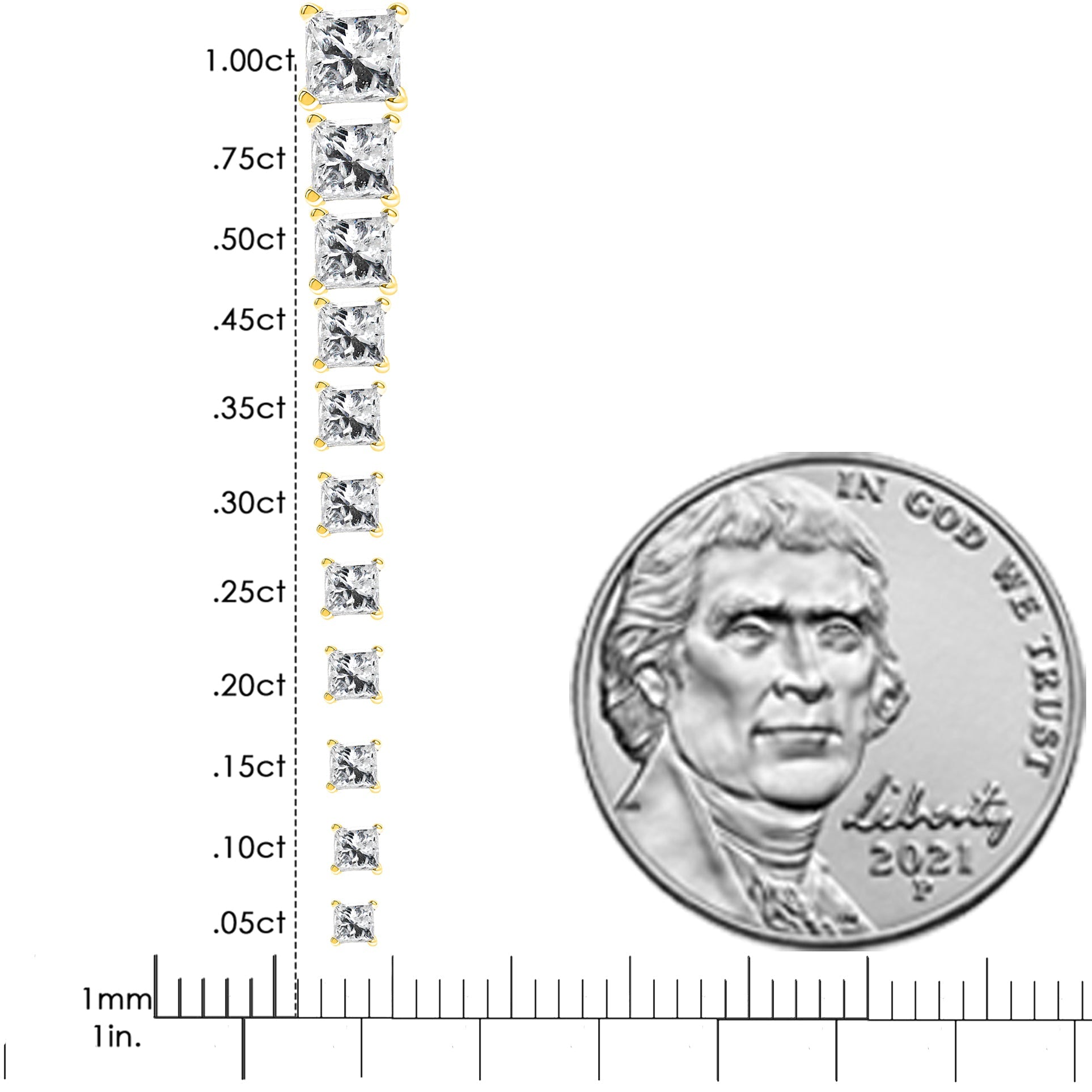 14K Yellow Gold 1/5 Cttw Princess-Cut Diamond Petite Classic Square Stud Earrings (I-J Color, I3 Clarity)
