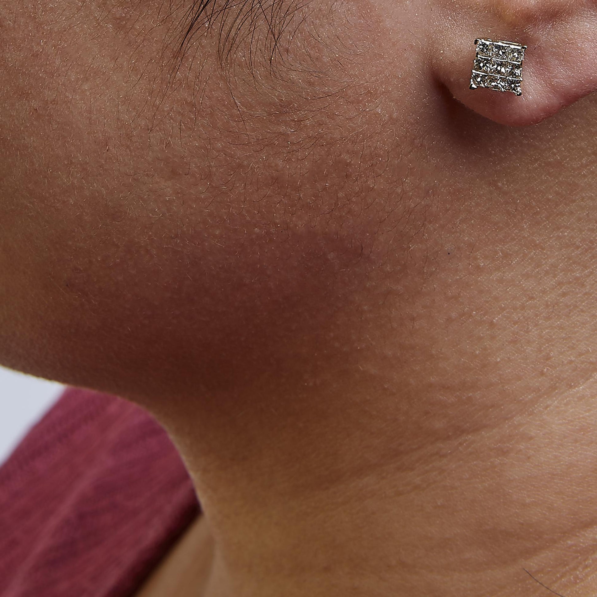 Immerse yourself in the subtle opulence of these exquisitely crafted earrings, where fine artistry meets timeless elegance. Fashioned from radiant 14K yellow gold, each piece captivates with a constellation of nine natural princess-cut diamonds, totaling 3/4 carats. Masterfully set to create the illusion of grand, singular stones, the invisible setting technique enhances the brilliance and size of each diamond. The gems, shimmering with a J-K color and SI2-I1 clarity, evoke a pure and mesmerizing light, drawing all eyes to their wearer. Secured comfortably with push backs, these earrings promise not only a luxurious appearance but also a secure and graceful fit. Perfect for those seeking a touch of sophistication and a whisper of glamour in their everyday ensemble.