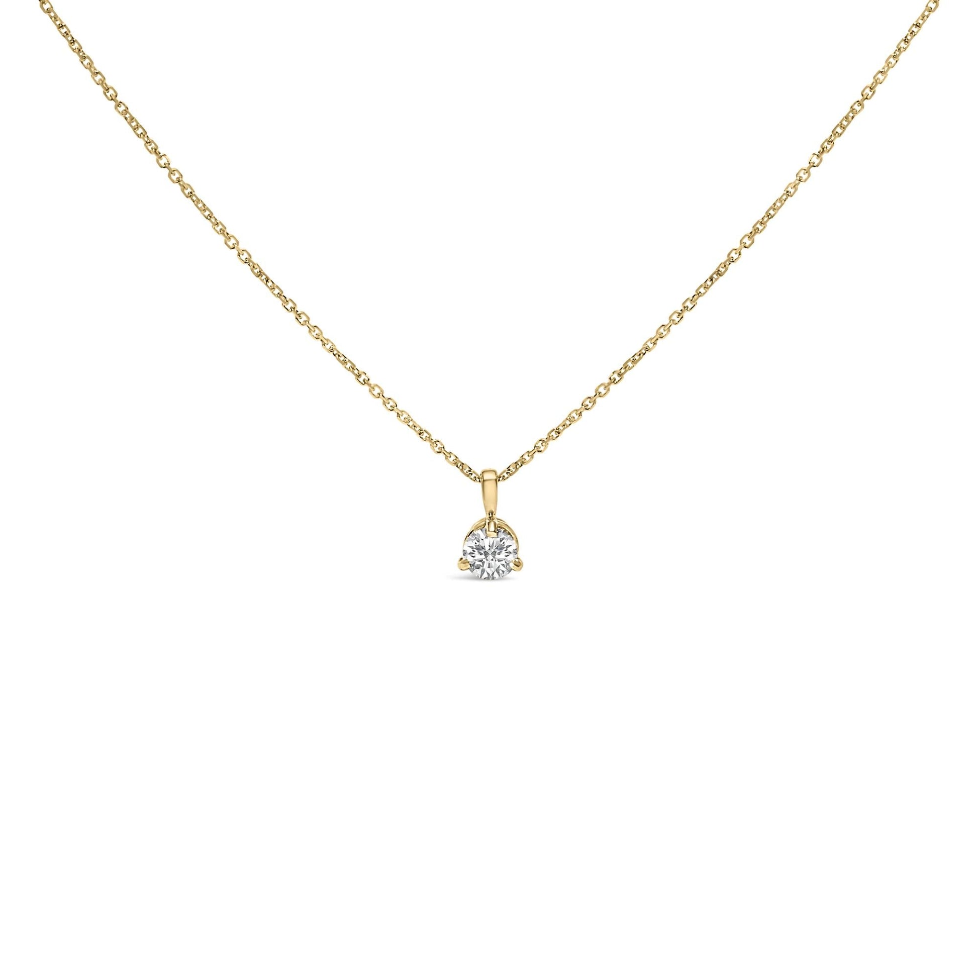 14K Yellow Gold 3/8 Cttw 3 Prong Martini Set Round Diamond Solitaire Pendant Necklace (G-H Color, SI2-I1 Clarity) - 18" Inches