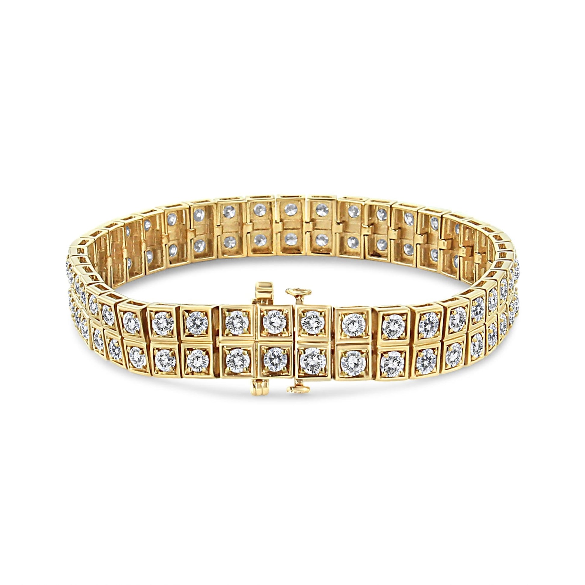 14K Yellow Gold 8.00 Cttw Prong Set Round-Cut Diamond Art Deco Style Two Row Square Frame Link Tennis Bracelet (J-K Color, I1-I2 Clarity) - Size 7.25"