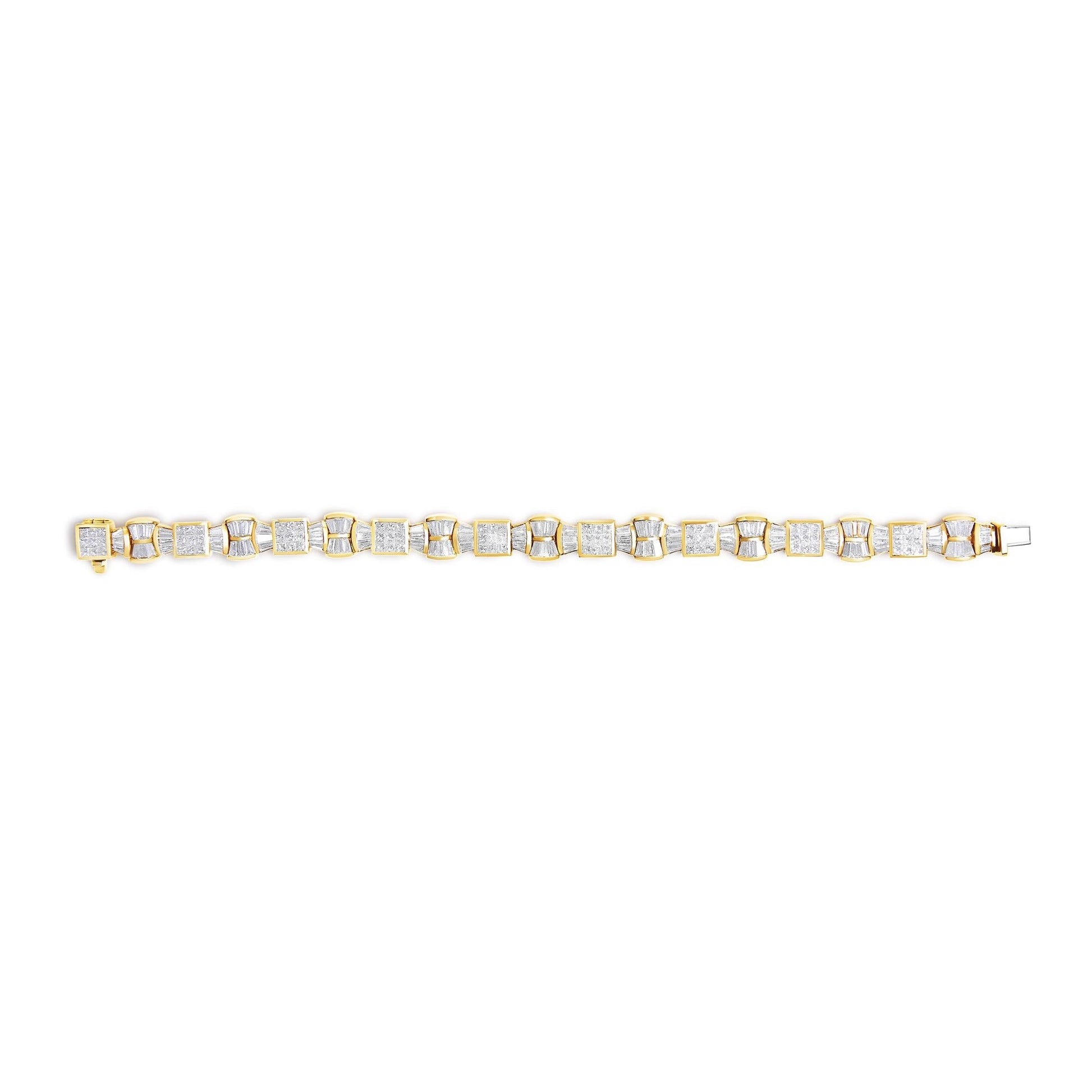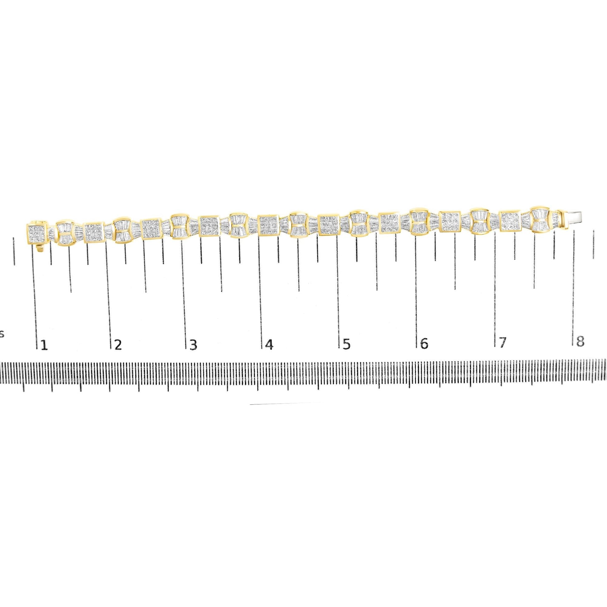 14K Yellow Gold 9 7/8 Cttw Princess and Baguette Diamond Bow and Box Link Tennis Bracelet (G-H Color, VS1-VS2 Clarity) - 7" Inches