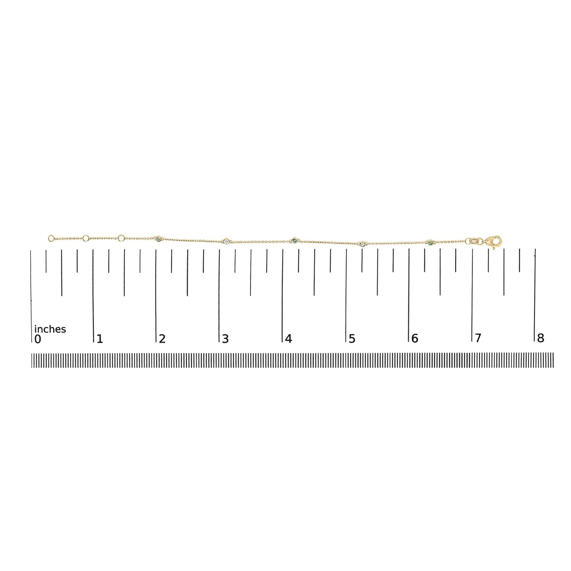 14K Yellow Gold Alternating Green Emerald and Diamond Bezel Station Chain Bracelet - Size 7.5 inch