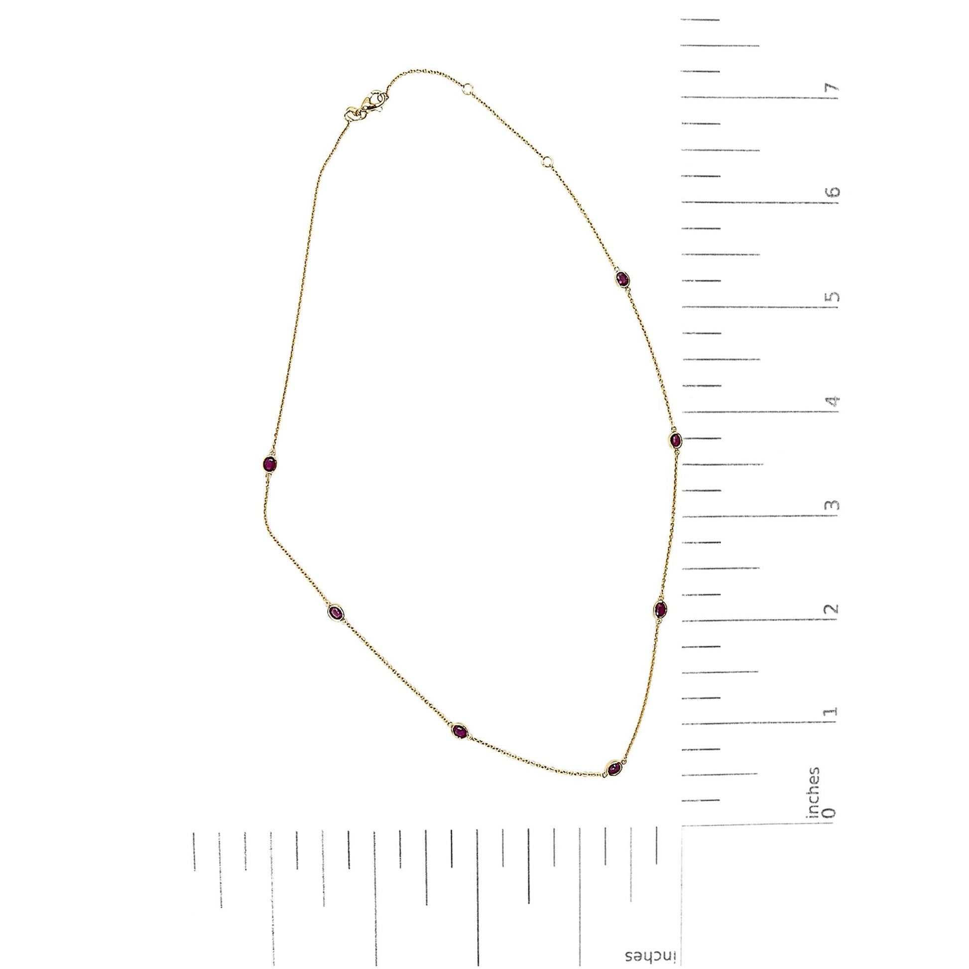 14K Yellow Gold Bezel Set 4x3 mm Oval Red Ruby Station Necklace - 18 Inches