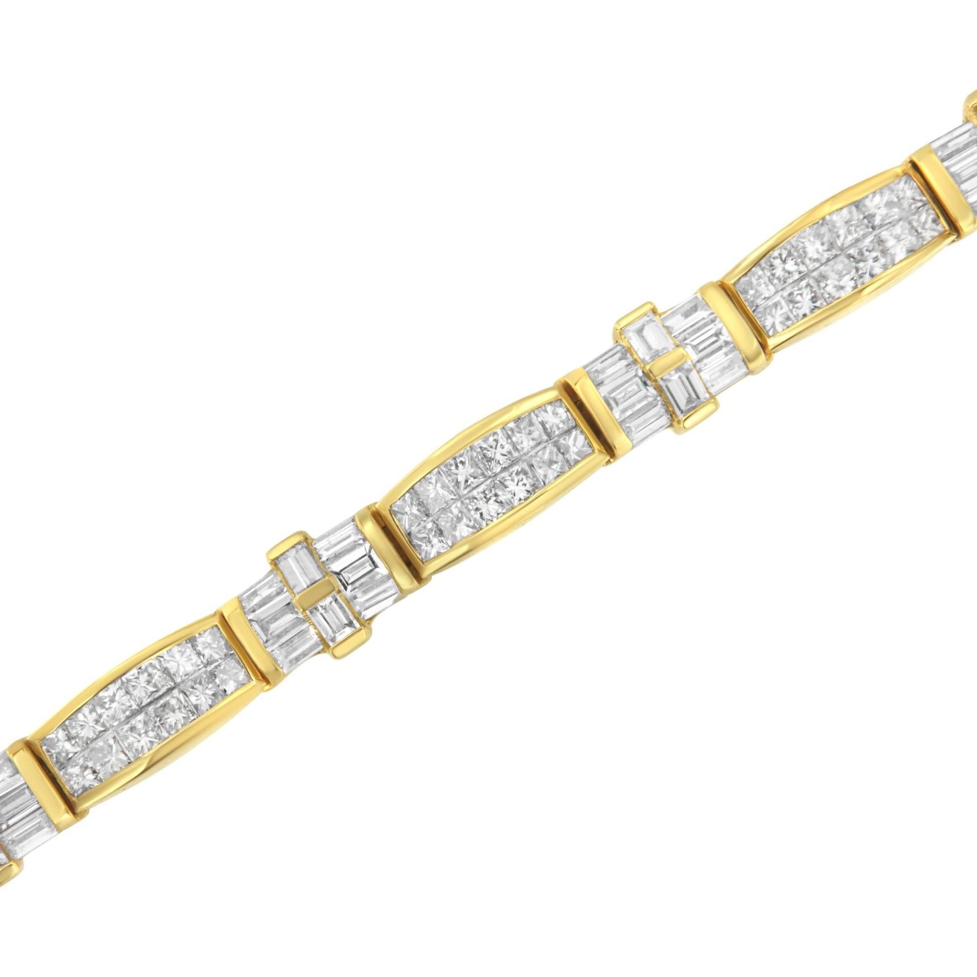 Love is the bond that brings you together. Celebrate it with this stunning bracelet. Crafted from 14 karat yellow gold, each link sparkles with over 11 carats of princess and baguette cut diamonds, creating an unbreakable connection.