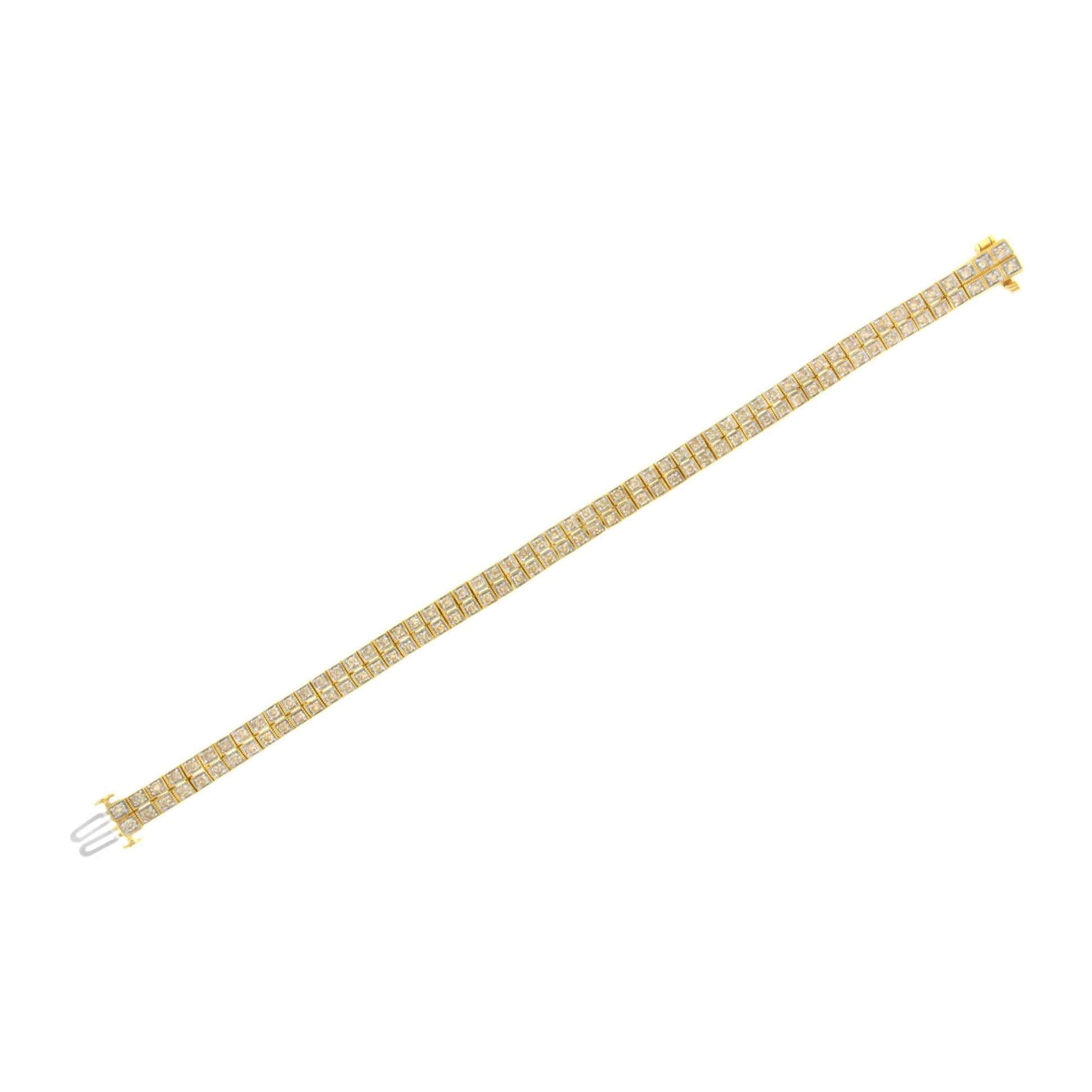 14K Yellow Gold over .925 Sterling Silver 3.0 Cttw Diamond Double Row Square Milgrain Link 7” Tennis Bracelet (K-L Color, I1-I2 Clarity)