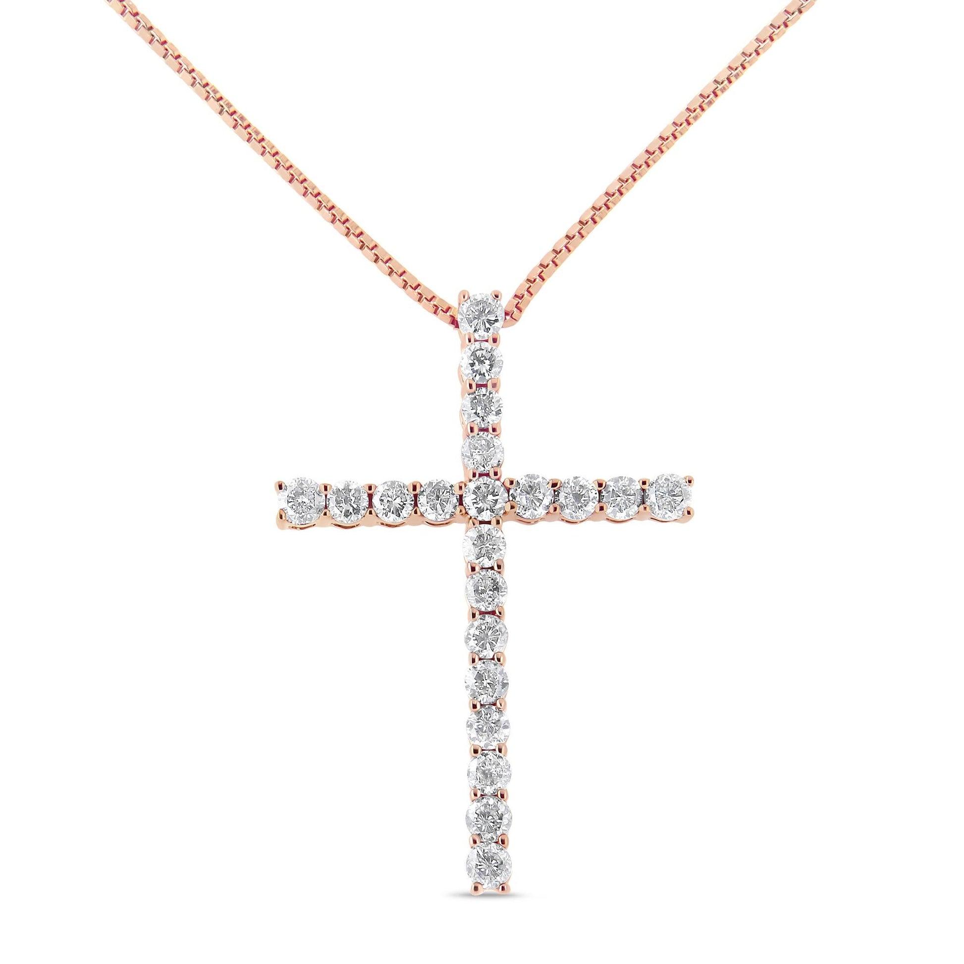 .925 Sterling Silver 1.0 Cttw Champagne Diamond Gold Cross Pendant Necklace for Women (Champagne Color, I1-I2 Clarity)- 18 inch