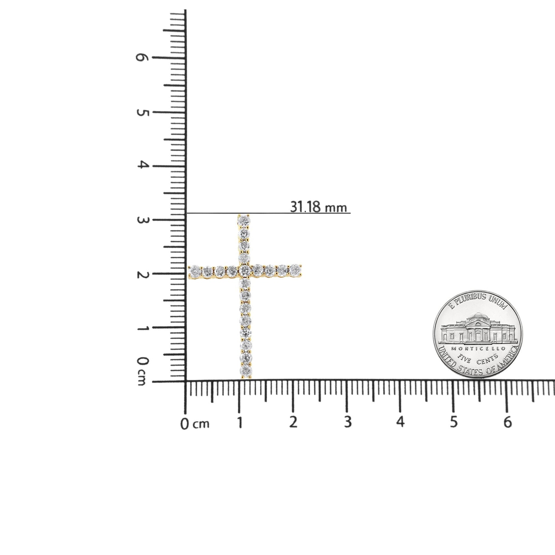 Embrace your spirituality with this sparkling 14kt yellow gold plated 925 sterling silver cross necklace. This pendant is embellished with 21 champagne color diamonds in classic shared prong settings. The diamonds are round-cut and have a total carat weight of 1.0 c.t. This piece comes with an 18" inch rope chain that hangs beautifully off the neck. This cross pendant is the perfect piece to celebrate your faith everyday.