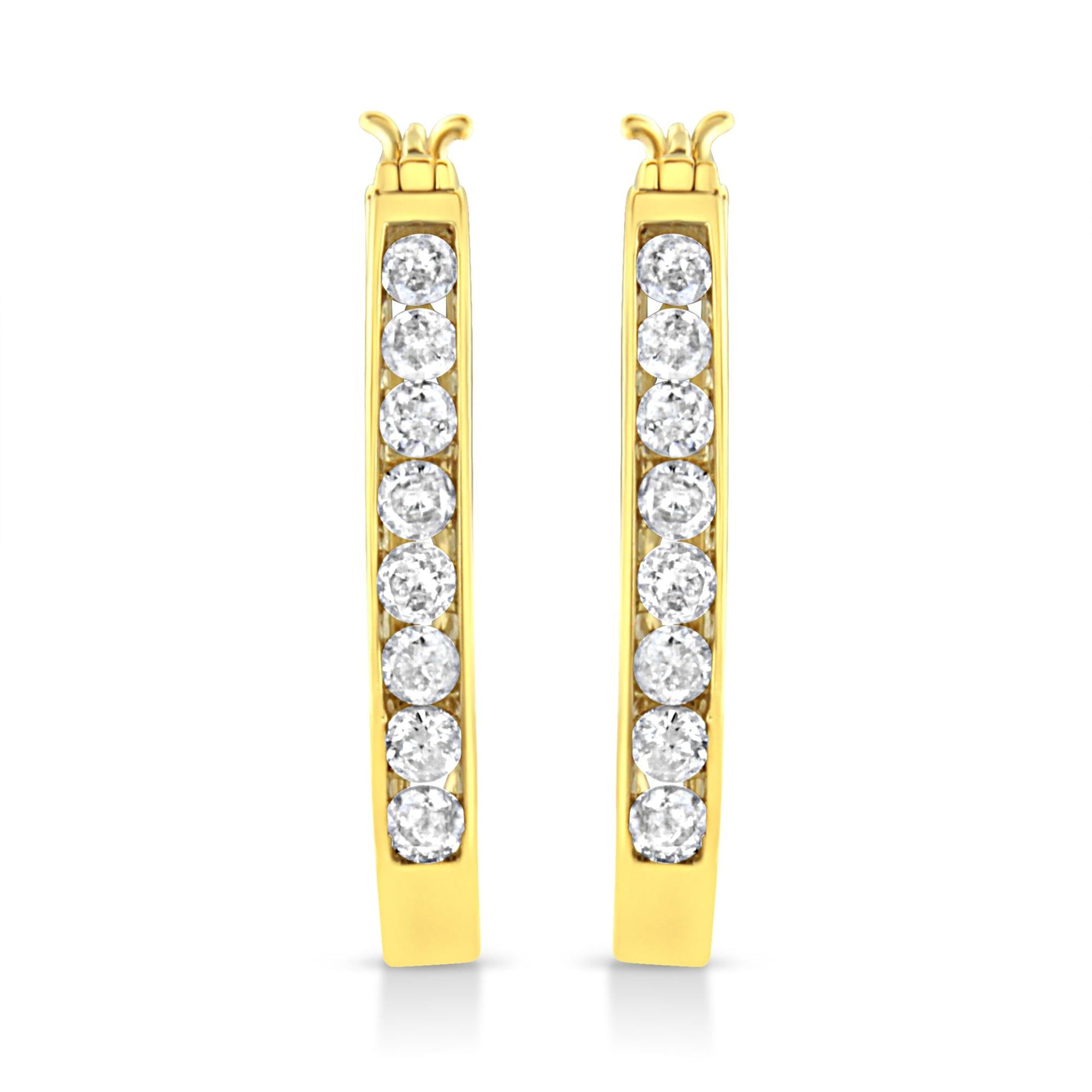 14k Yellow Gold Plated .925 Sterling Silver 1.0 Cttw Channel Set Brilliant Round Cut Diamond Hoop Earrings (J-K Color, I2-I3 Clarity)