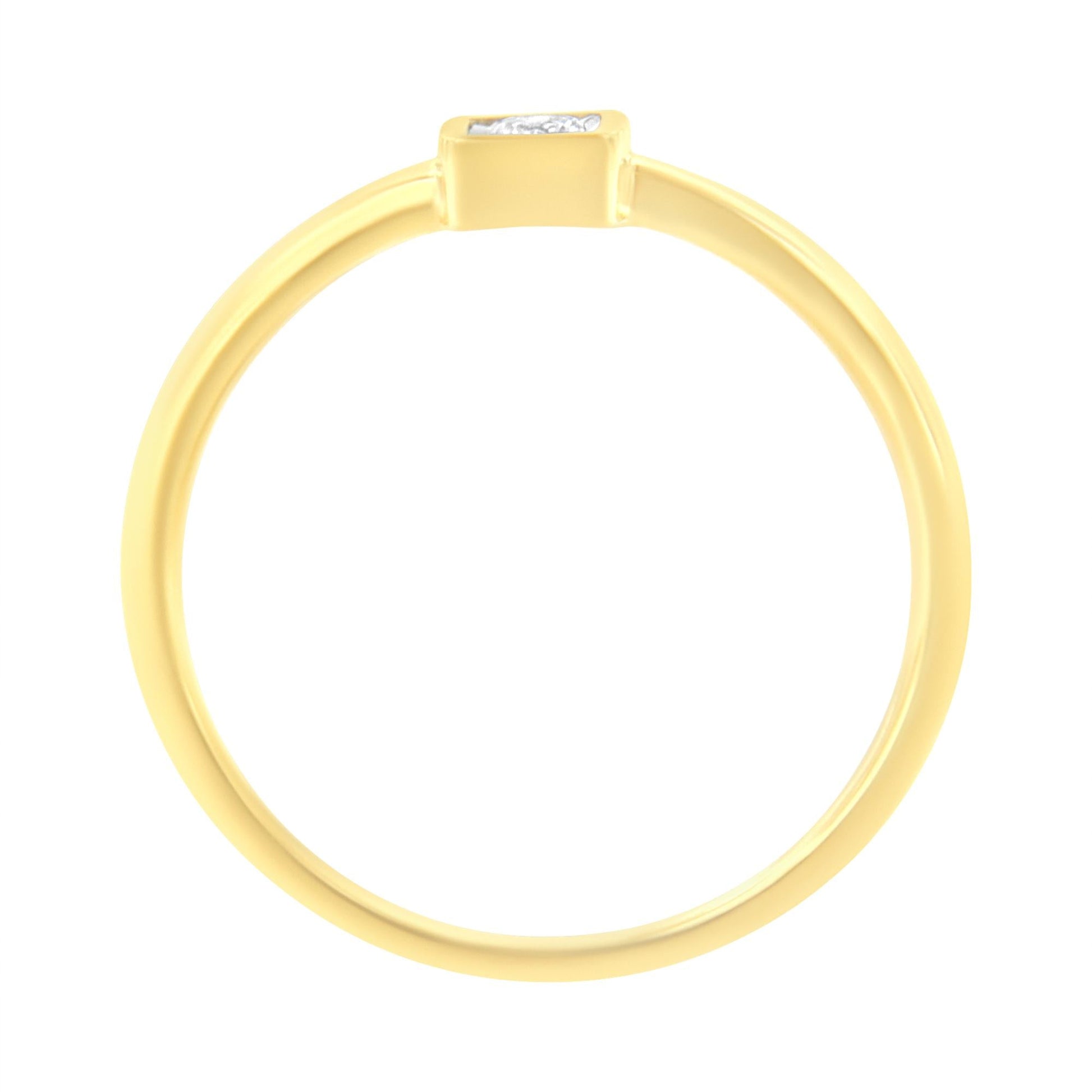 A classic look for the classic girl. Fashioned in stunning 14k yellow gold plated .925 sterling silver, this promise ring features a shimmering .05 ct. round diamond solitaire in a unique miracle plate setting for maximum sparkle. This ring is the most elegant way to promise yourself to her. Show your commitment with this diamond promise ring.