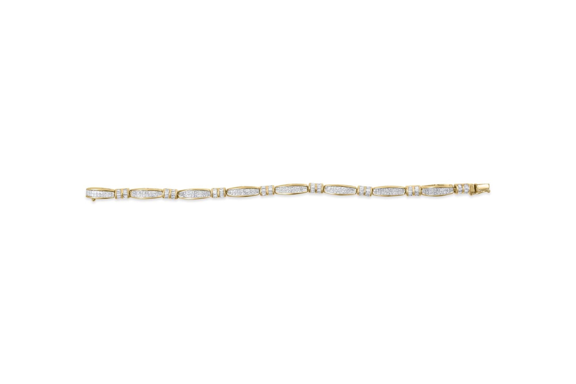 A mix of classic princess and baguette cut diamonds beautifully weave their way through this beaded style bracelet. Finished in polished yellow gold, and featuring two carats of sparkling stones, it's a wonderful way to surprise that special woman with timeless style.