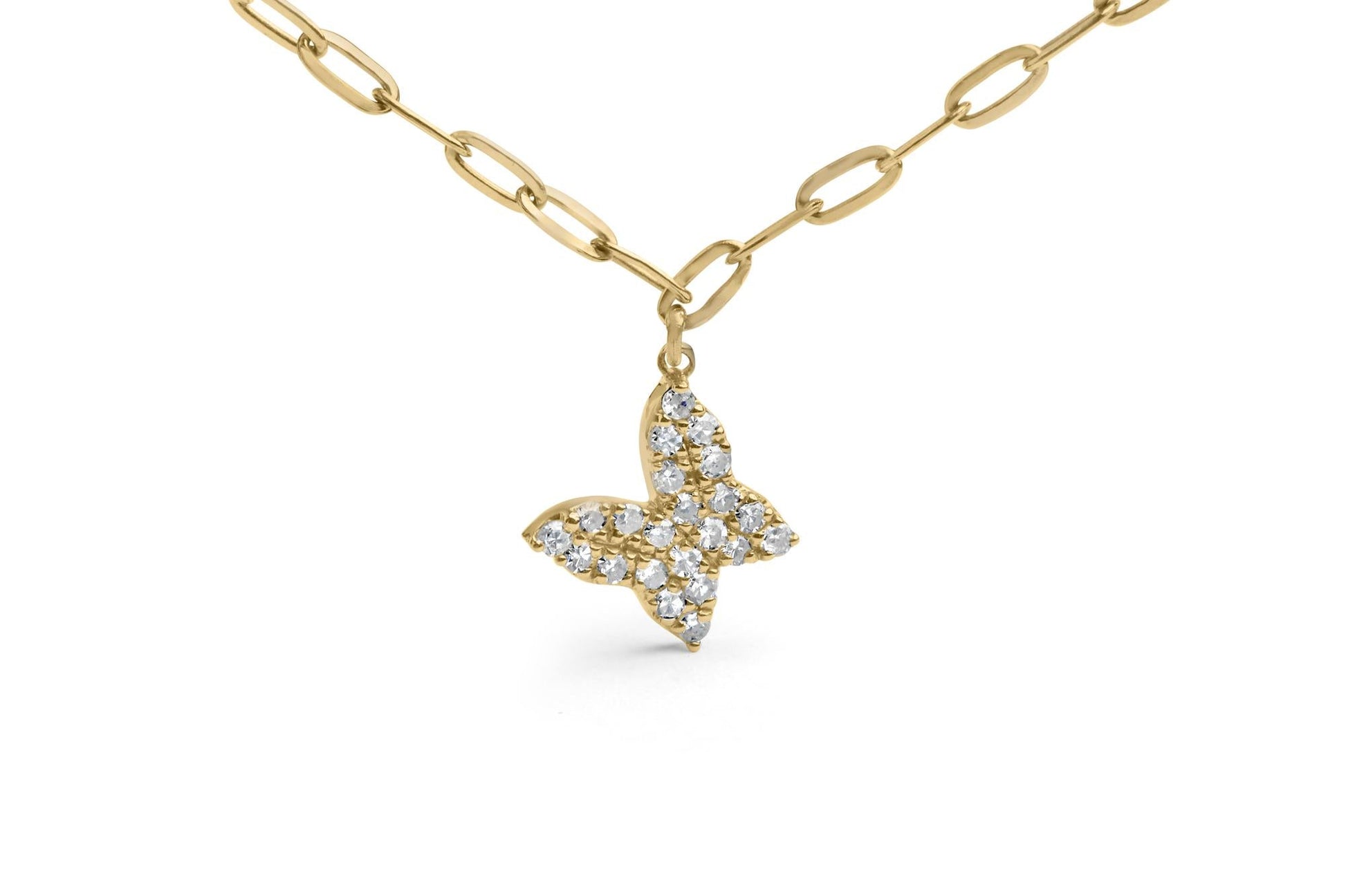 14KT Yellow Gold 1/2 Cttw Diamond Butterfly Station Paperclip Station Necklace (I-J Color, I1-I2 Clarity) - Adjustable 15"-17" Inches