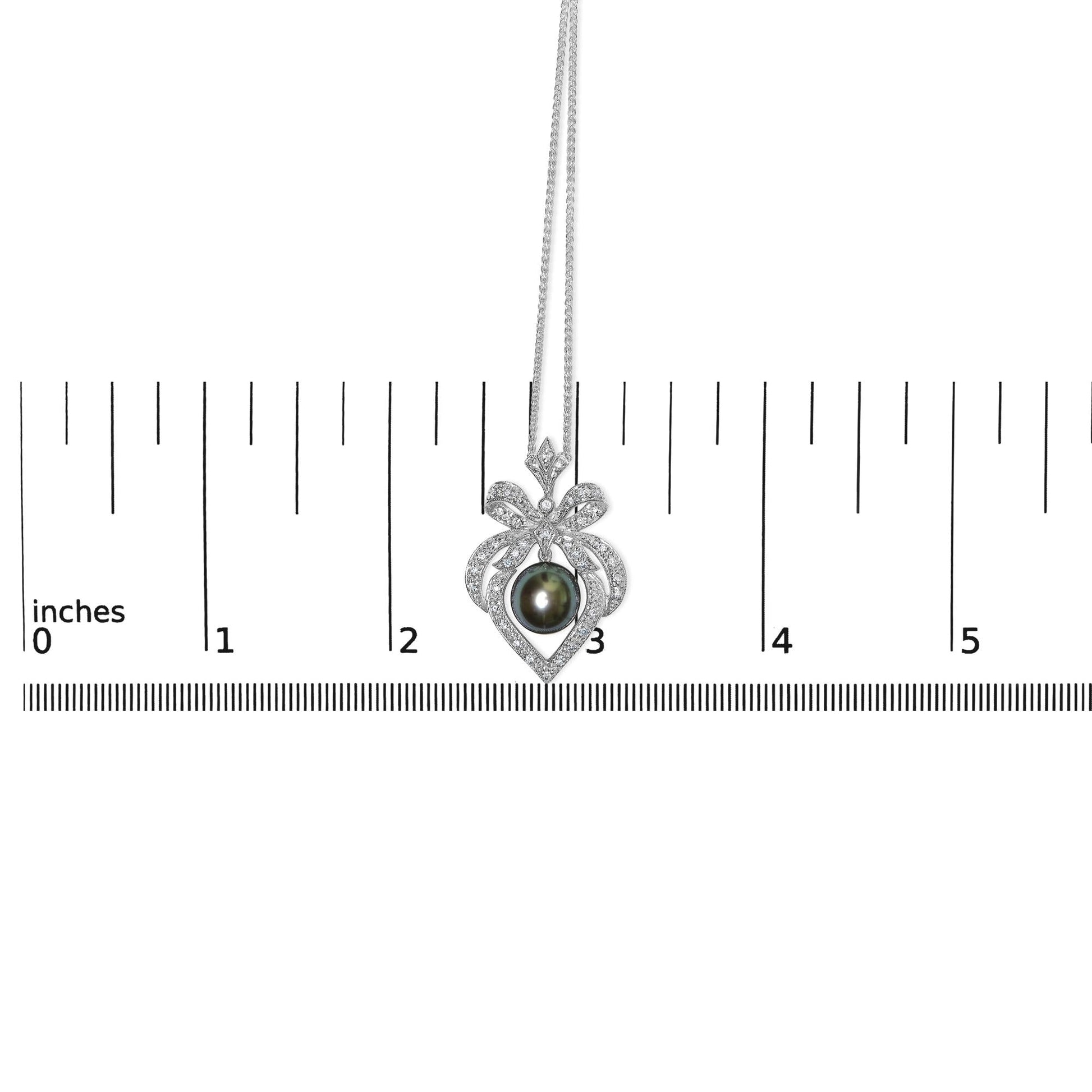 18K 3/4 Cttw Diamond and 12.5 MM Cultured Black Tahitian Pearl Heart Pendant Necklace (G-H Color, SI1-SI2 Clarity) - 18" Inches
