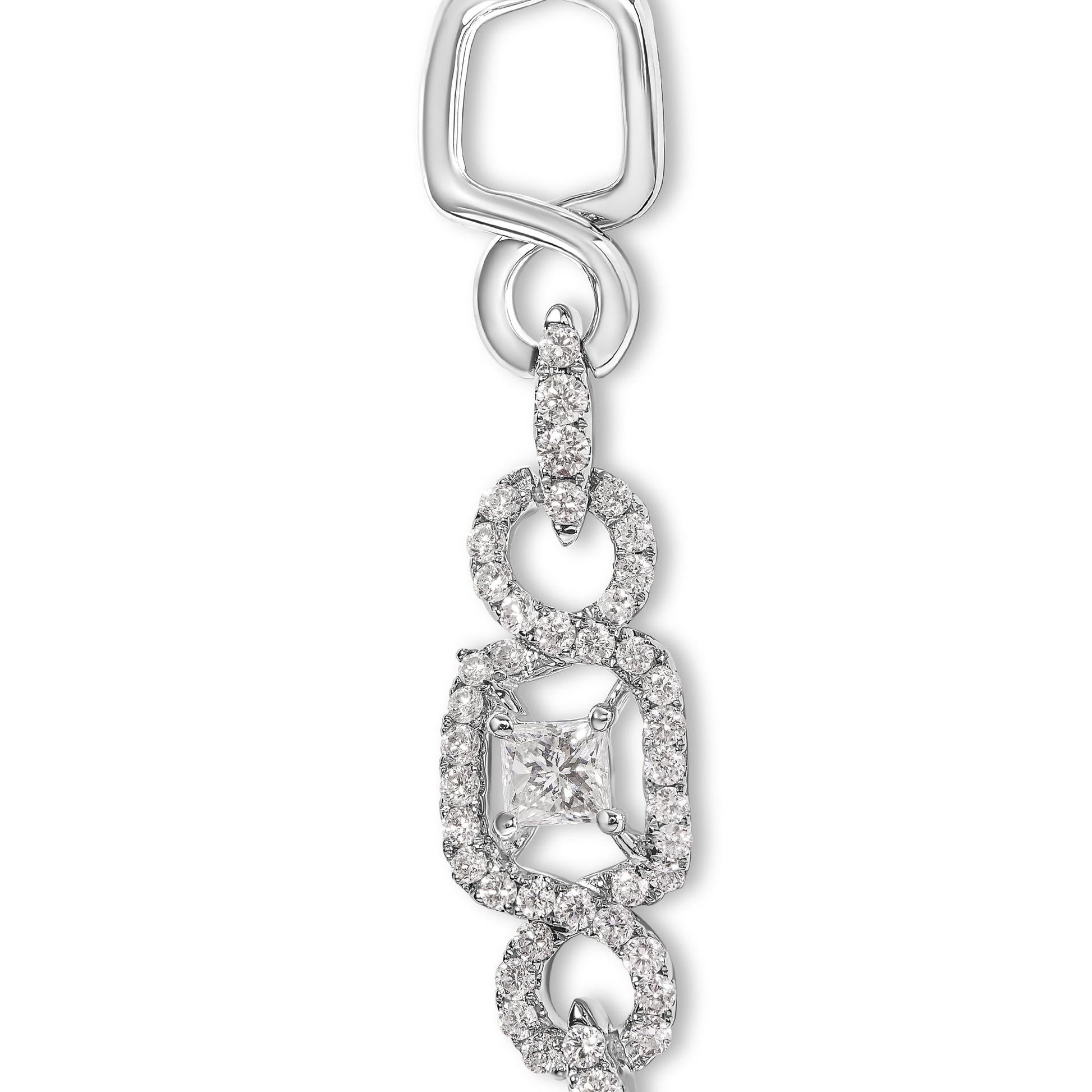 Introducing an exquisite masterpiece that will leave you breathless - an 18K White Gold "Duchess" Station and Link Collar Necklace. Adorned with a stunning array of 393 diamonds, totaling a remarkable 5.00 cttw, this necklace is a true symbol of elegance and luxury. Crafted with meticulous attention to detail, each diamond is expertly set in a prong setting, showcasing their brilliance and fire. The combination of princess and round cut diamonds creates a captivating visual effect, while the F-G color and VS2-SI1 clarity ensure exceptional quality. With a length of 17 inches, this necklace gracefully drapes around the neck, enhancing your natural beauty. Whether you're attending a glamorous event or simply want to add a touch of sophistication to your everyday look, this necklace is the perfect choice. Indulge in the allure of this enchanting piece and let your inner Duchess shine.