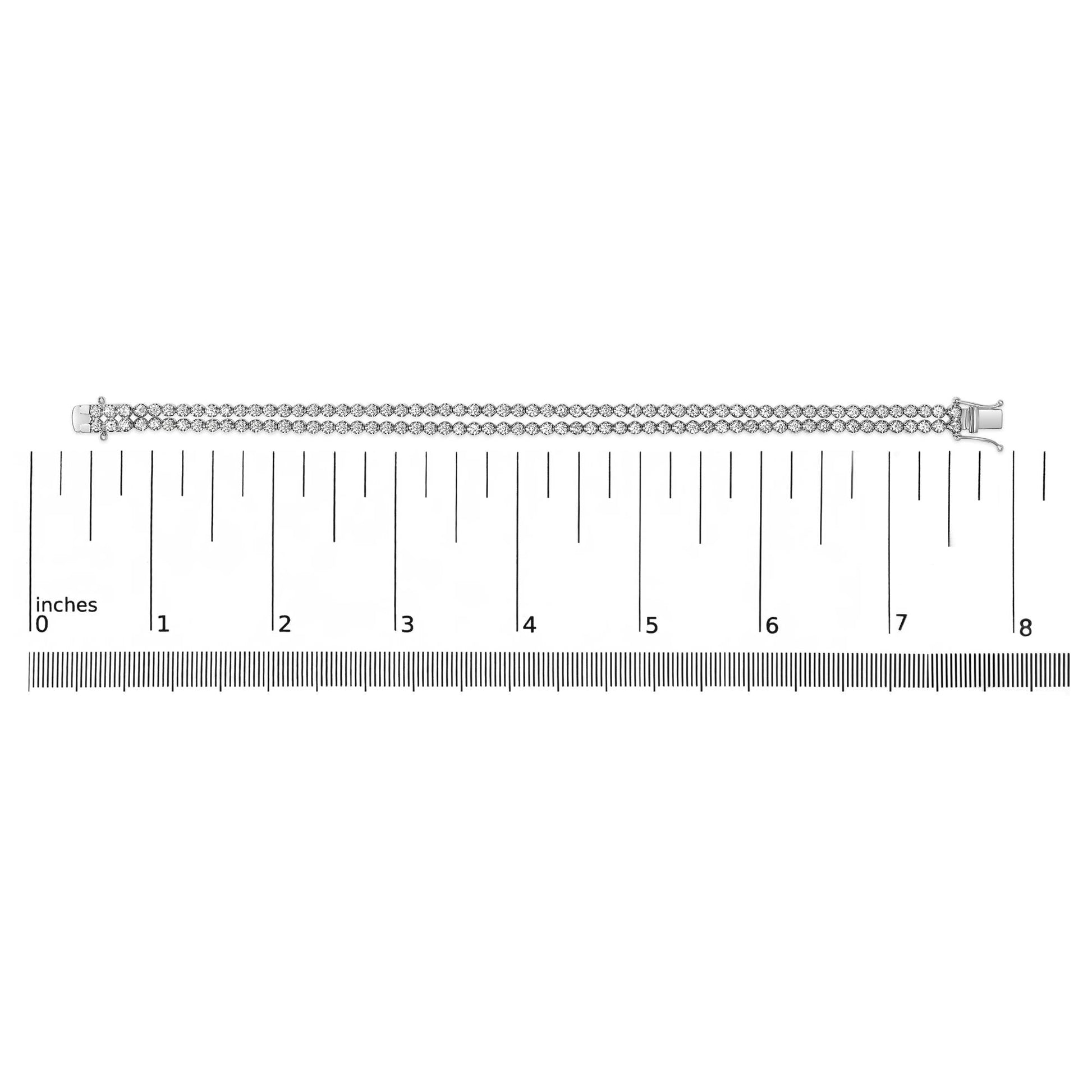 Embrace unparalleled elegance with this 18K white gold tennis bracelet, radiant in its double-row design adorned with 5 3/5 carats of natural diamonds. These gems, of pristine G-H color and impeccable VS1-VS2 clarity, dazzle in a symphony of light, secured each by four-prong settings that craft individual glinting links wound gracefully around the wrist. Elevating its allure, the white gold is rhodium-plated, enhancing both durability and sheen. A robust box clasp accompanied by a safety latch promises both security and comfort. This bracelet isn't just jewelry; it's a captivation of craftsmanship and luxury, designed to echo the rhythm of your life's most refined moments.