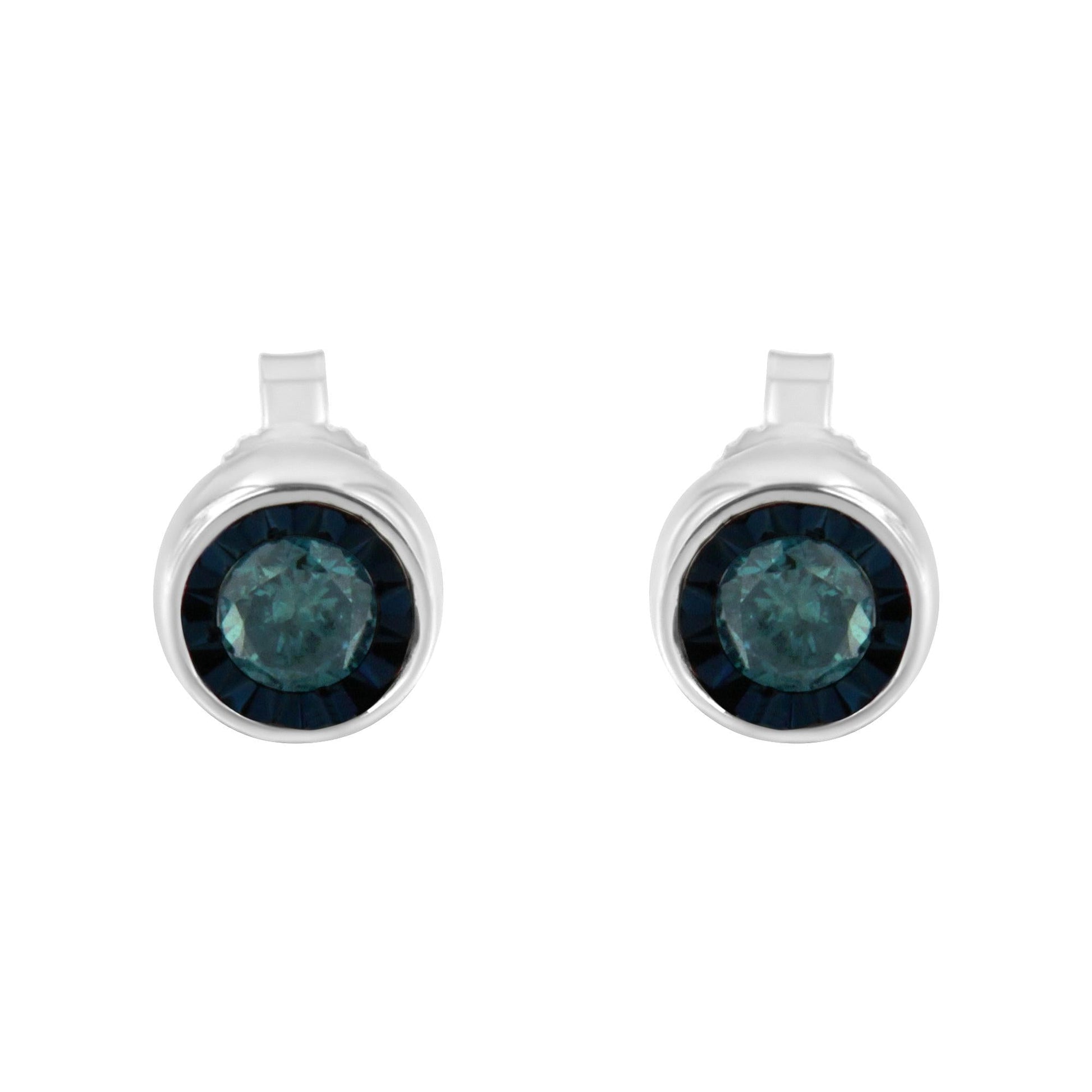 .925 Sterling Silver 0.40 Cttw Round Brilliant-Cut Blue Diamond Miracle-Set Stud Earrings (Fancy Color-Enhanced, I2-I3 Clarity)