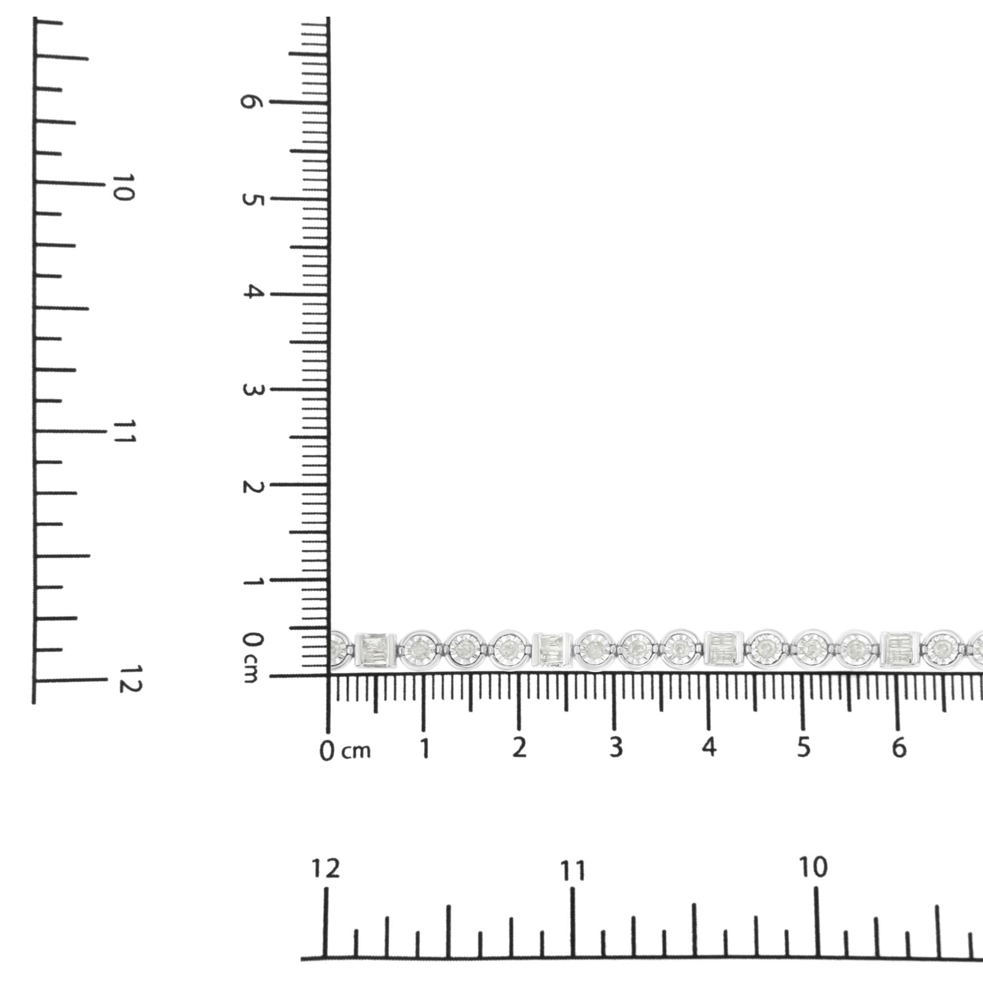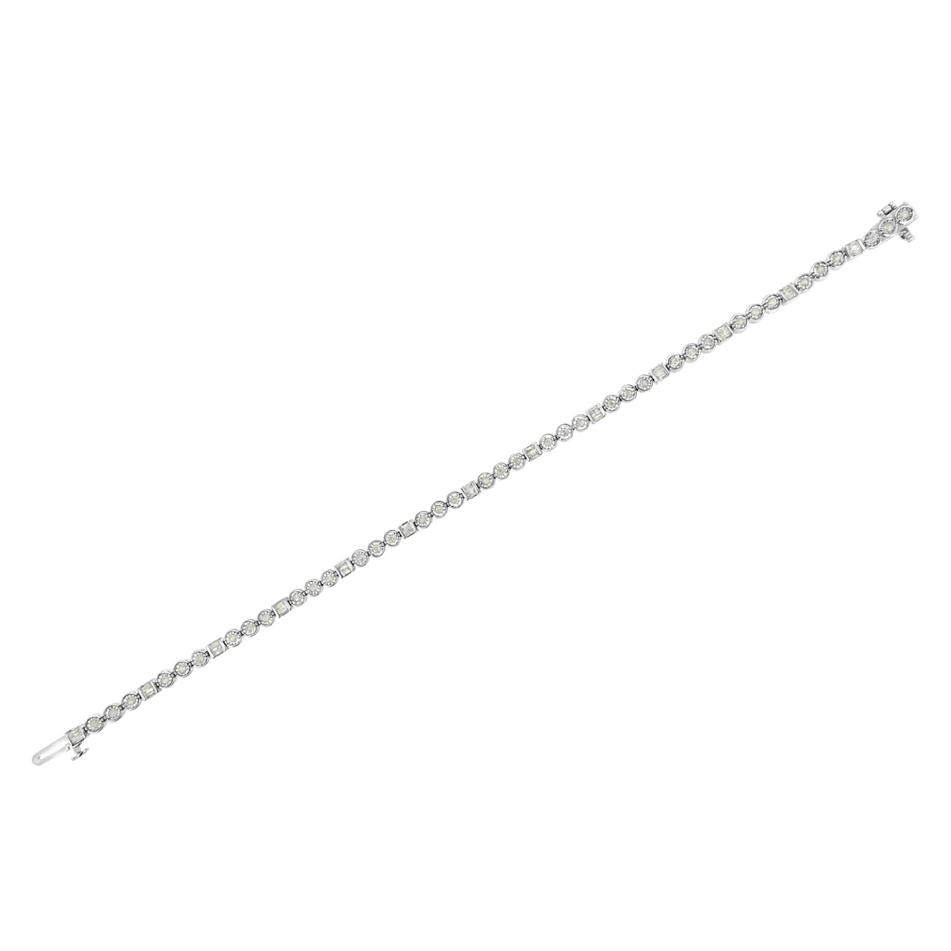 .925 Sterling Silver 1.0 Cttw Alternating Channel Set Baguette and Miracle Set Round Diamond Link Bracelet (I-J Color, I3 Clarity) - 7.25"
