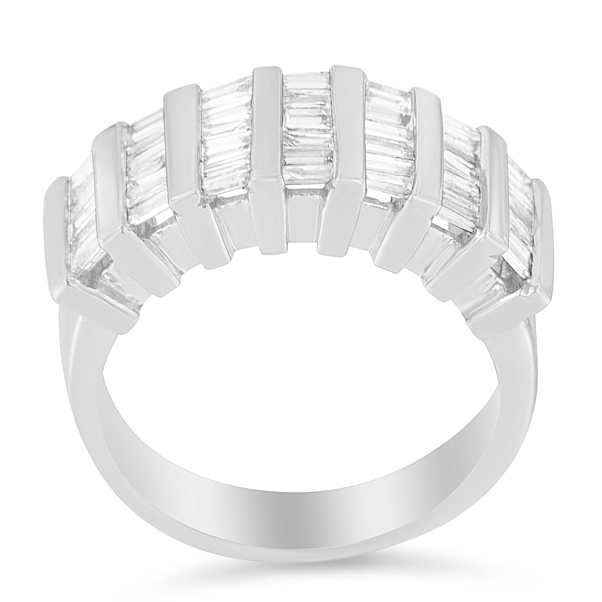 .925 Sterling Silver 1.0 Cttw Baguette Cut Diamond Vertical Channel Fluted Multi-Row Unisex Fashion Wedding Ring (H-I Color, I1-I2 Clarity)
