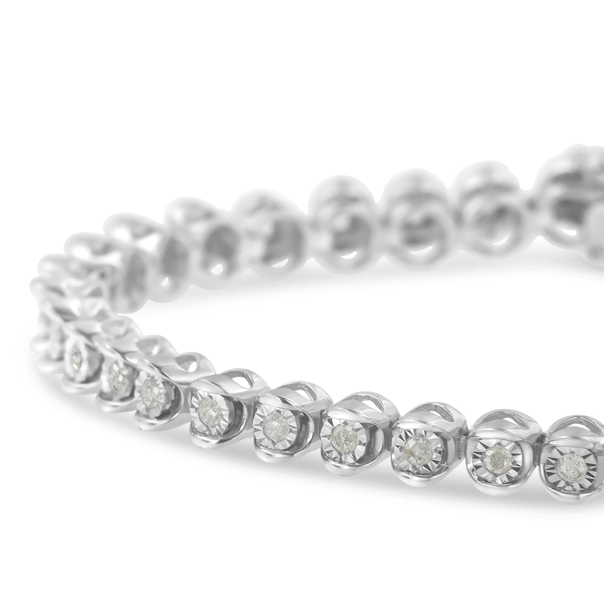 .925 Sterling Silver 1.0 Cttw Diamond Miracle-Set 7" Link Bracelet (I-J Color, I3 Clarity)