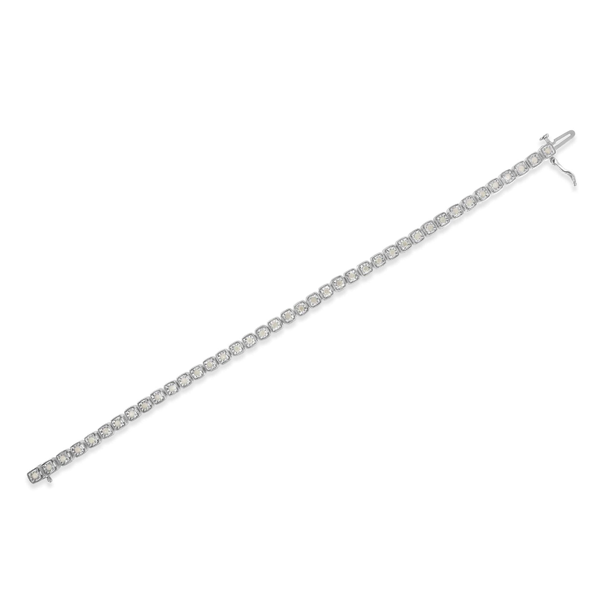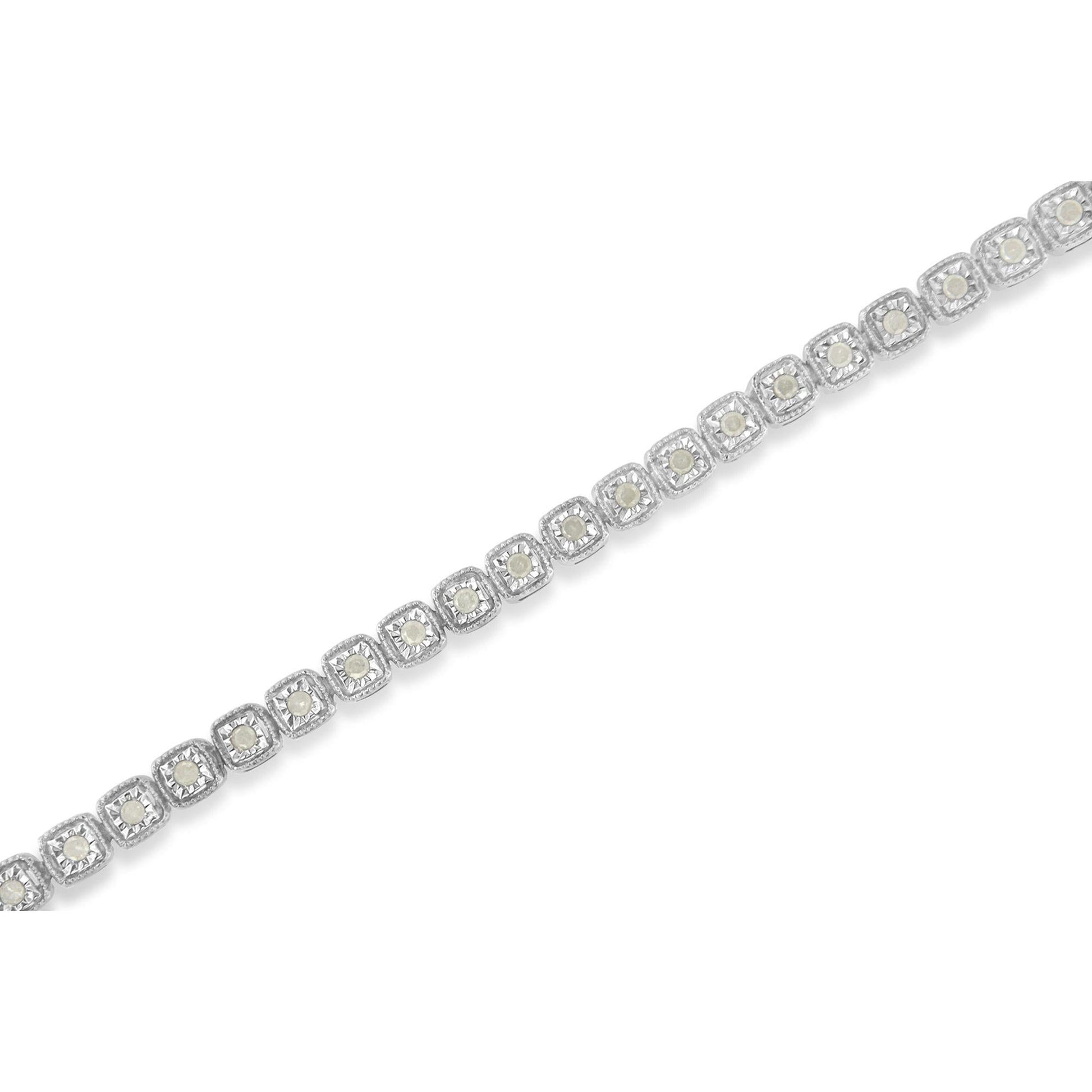 .925 Sterling Silver 1.0 Cttw Diamond Miracle-Set Square Milgrain 7" Link Tennis Bracelet (I-J Color, I3 Clarity)