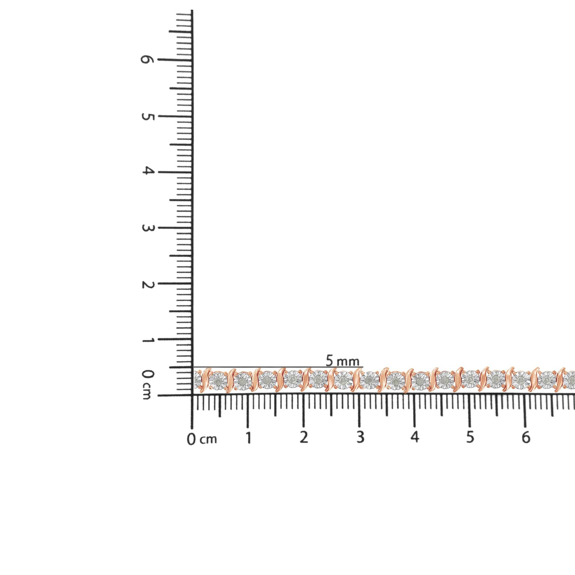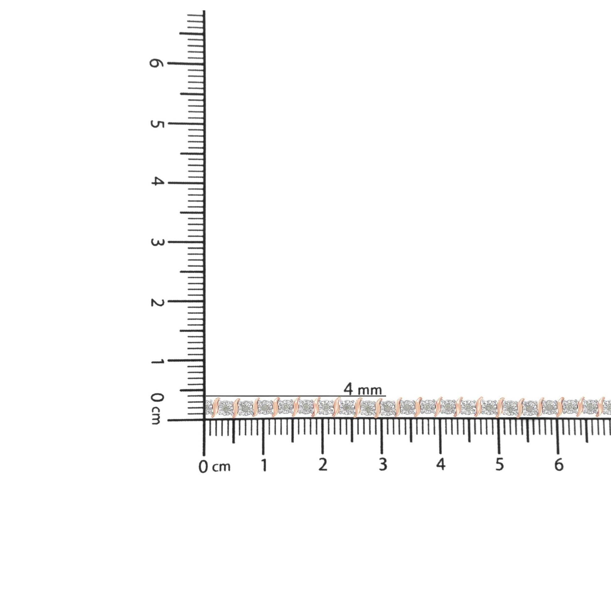 Feminine yet glamorous, this bracelet shines! The curvy settings spiral around each beautiful rose cut diamond for a unique and elegant gift she'll remember forever. In your choice of polished sterling silver setting plated with tarnish-free rhodium, a platinum family metal; or with a 10kt two-tone, rose, or yellow gold electro-coating. This feminine tennis bracelet is made up of the most lovely, multifaceted rose cut diamonds of I3 promotional clarity, which give off a wonderful sparkle. Each diamond is set in the center of a faceted miracle plate, an illusion-style setting that makes the diamond look bigger and multiplies the sparkle of your bracelet.