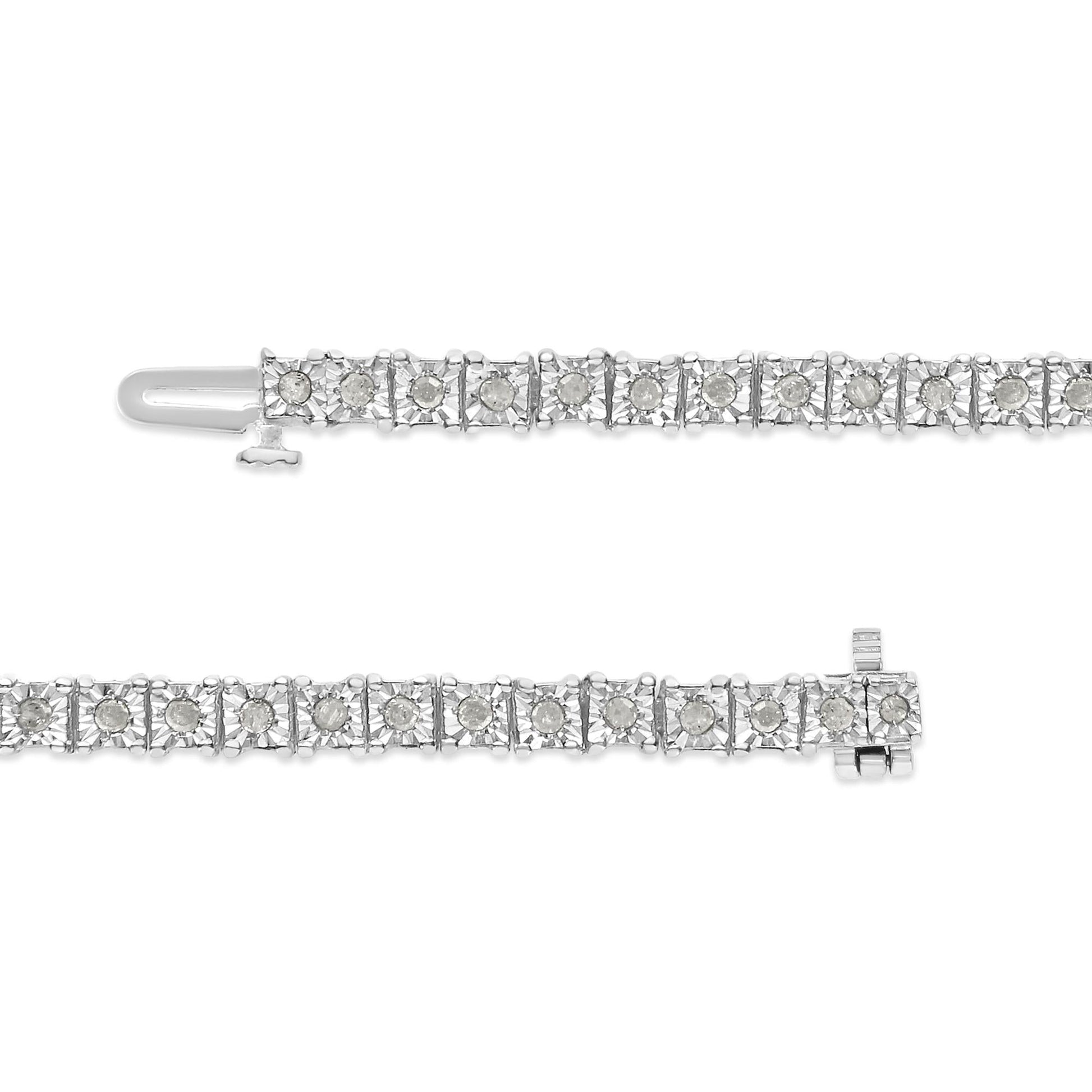 .925 Sterling Silver 1.0 Cttw Diamond Square Frame Miracle-Set Tennis Bracelet (I-J Color, I3 Clarity) - 8"