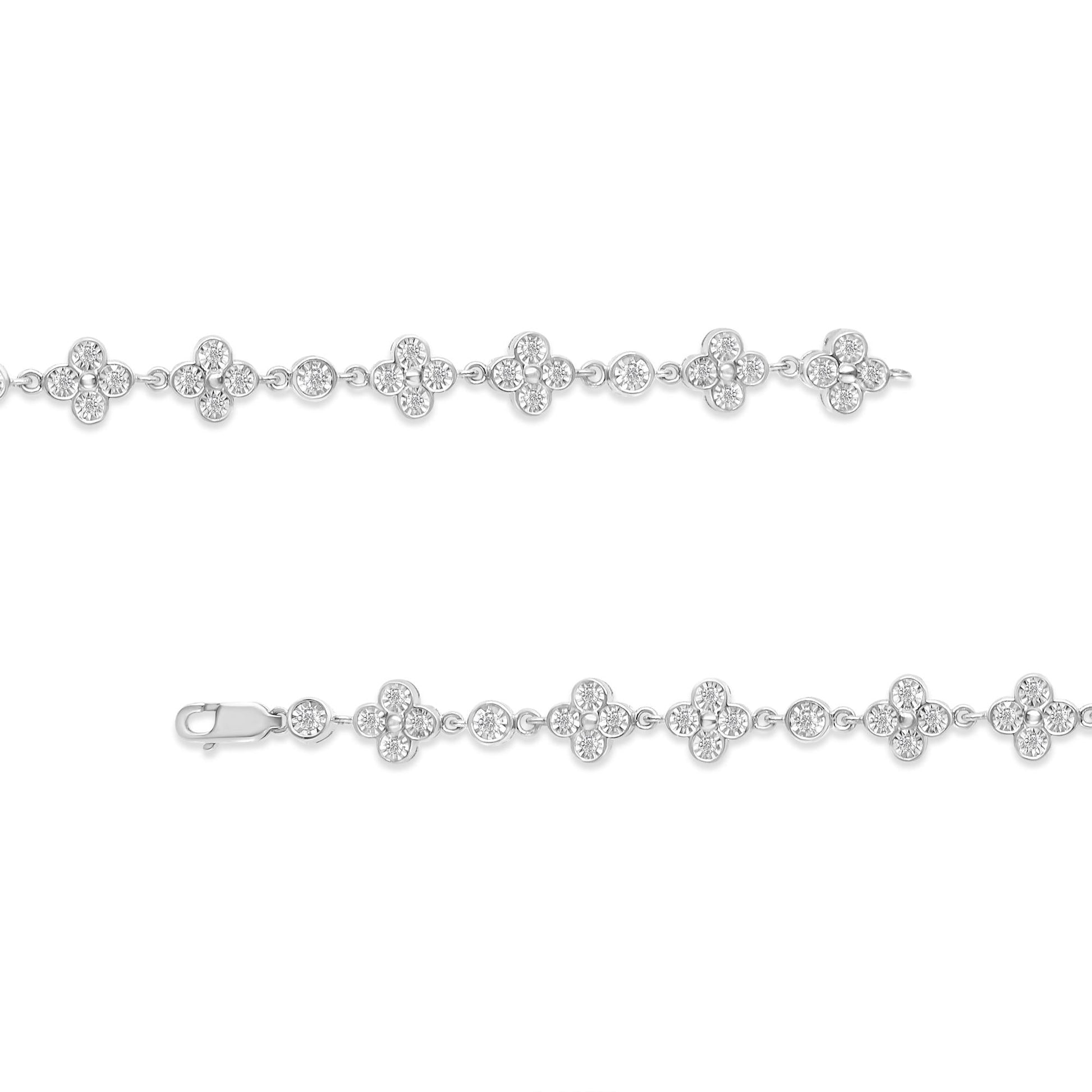 .925 Sterling Silver 1.0 Cttw Miracle-Set Diamond 4 Leaf and Solitaire Station Link Bracelet (I-J Color, I3 Clarity) - 7.25"