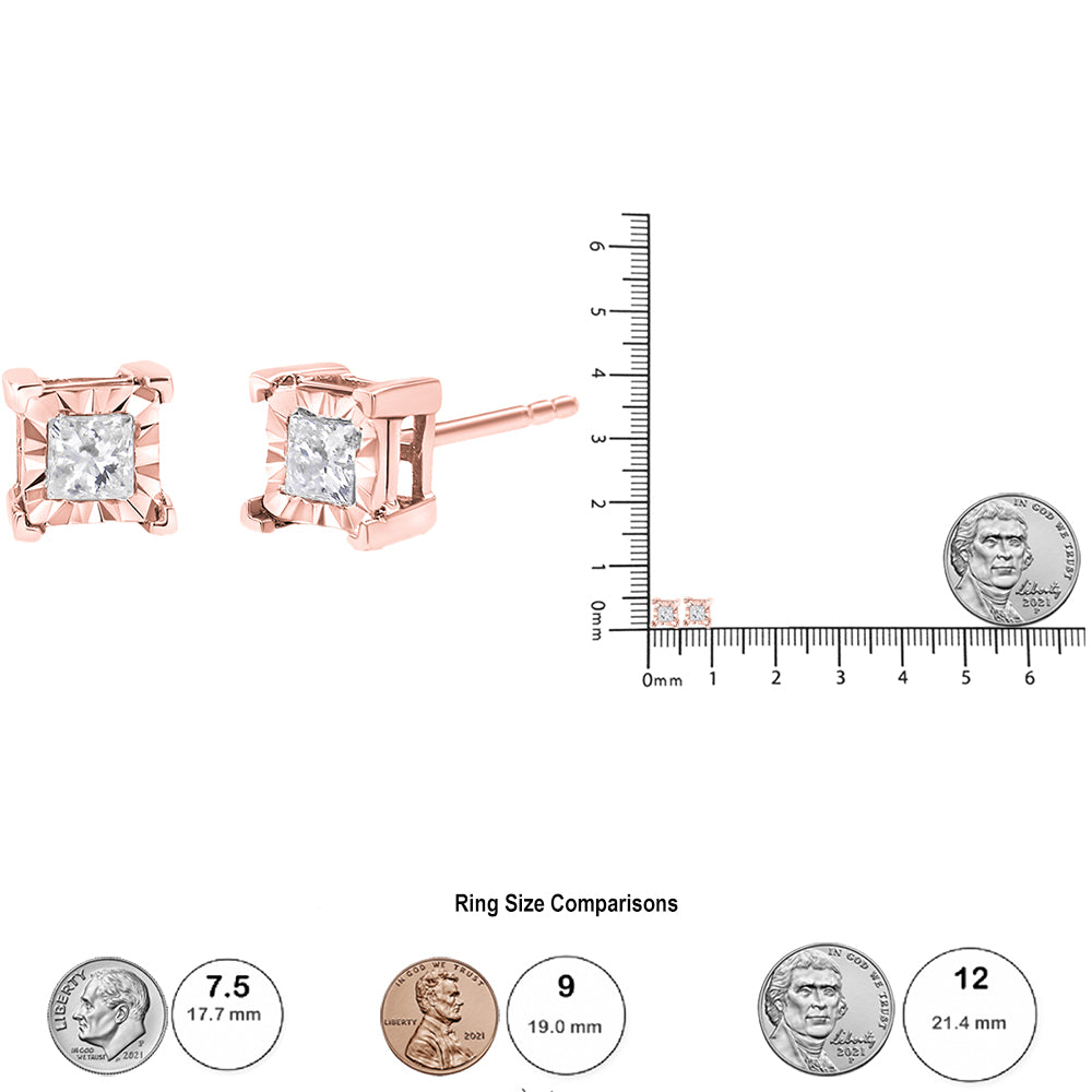 .925 Sterling Silver Miracle Set Princess-cut Diamond Solitaire Stud Earrings (H-I Color, I2-I3 Clarity)