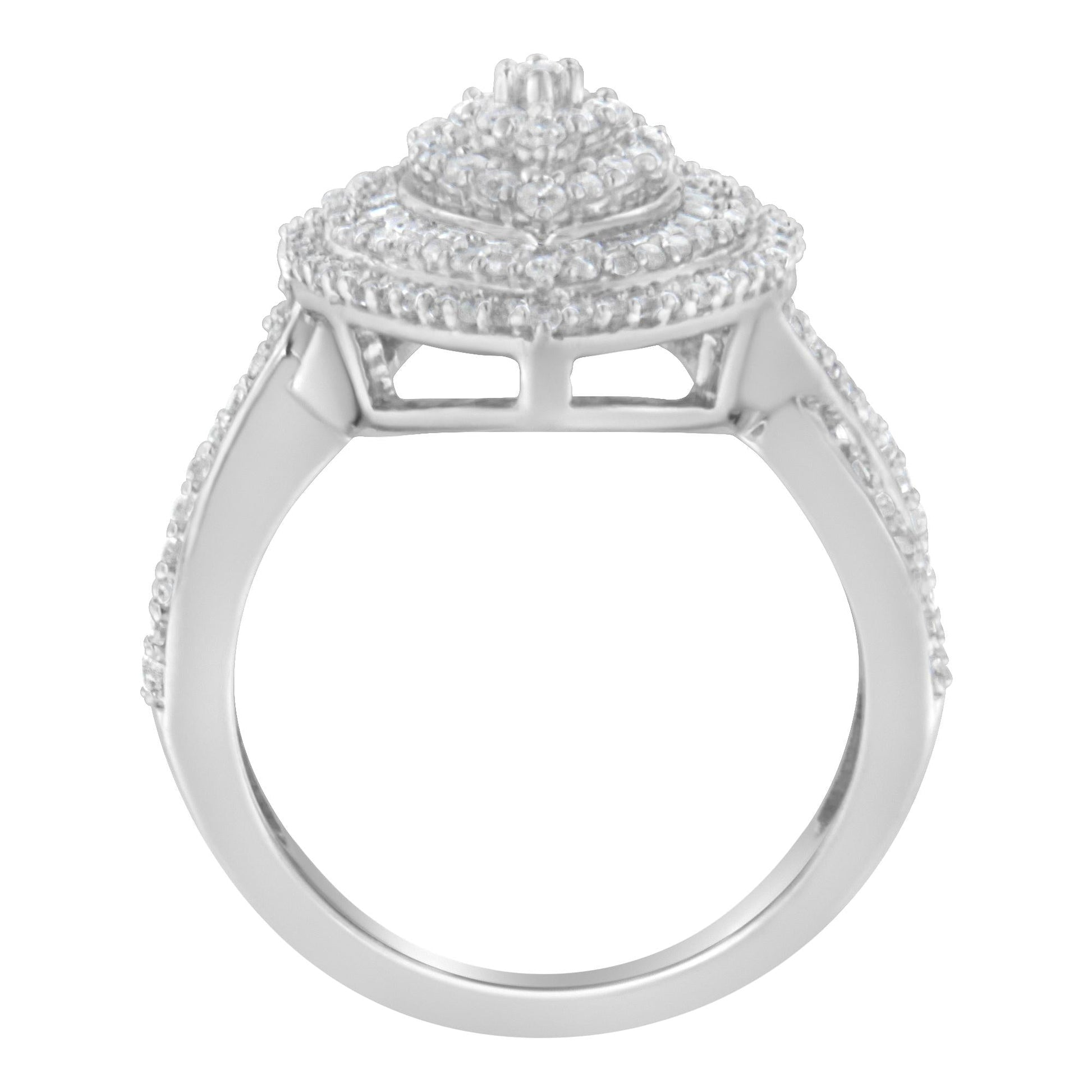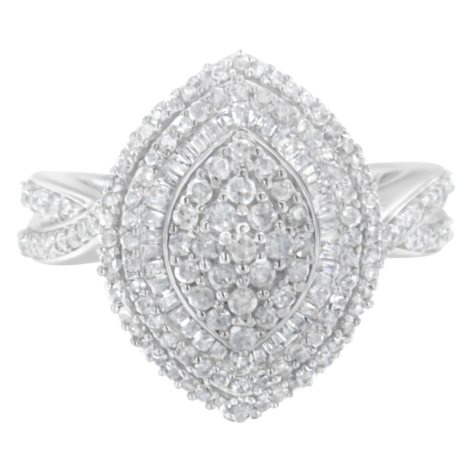 .925 Sterling Silver 1.0 Cttw Round & Baguette-Cut Diamond Marquise-Shaped Cluster Triple Stepped Halo Cocktail Fashion Ring (I-J Color, I2-I3 Clarity)