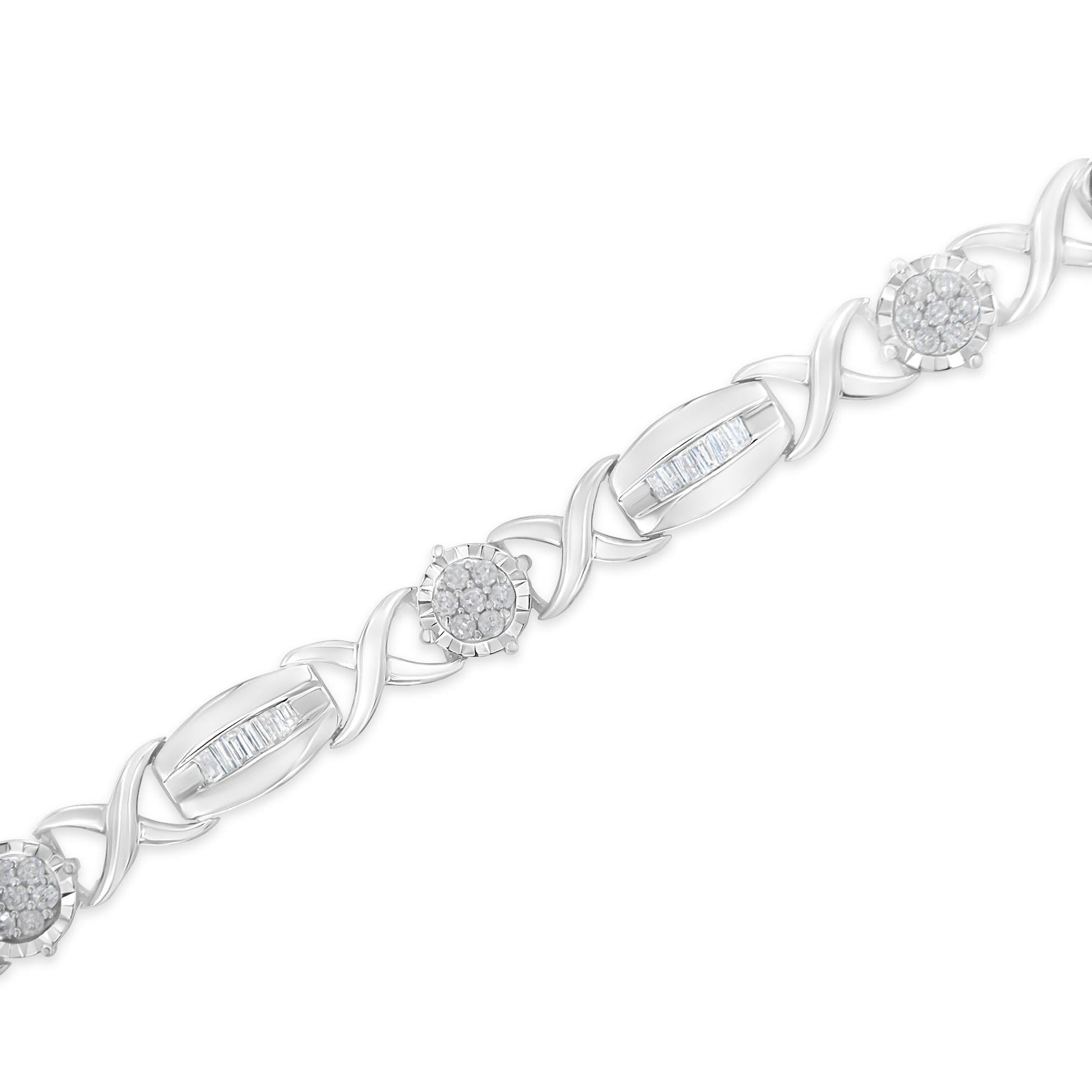 .925 Sterling Silver 1.0 Cttw Round-Cut and Baguette-Cut Diamond X-Link Bracelet (I-J Color, I1-I2 Clarity) - 7"