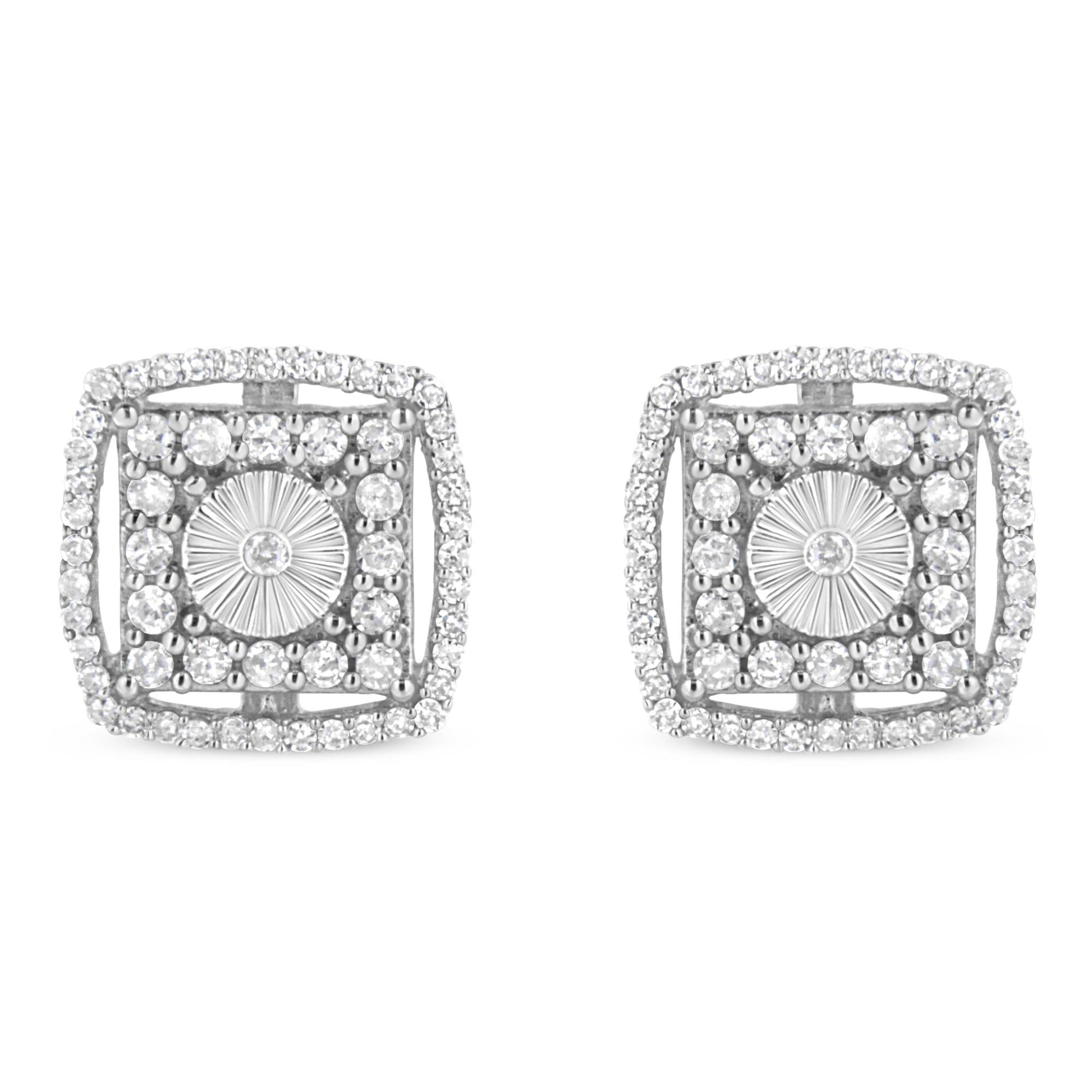 .925 Sterling Silver 1.0 Cttw Round Diamond Double Halo and Disc Stud Earring (I-J Color, I2-I3 Clarity)