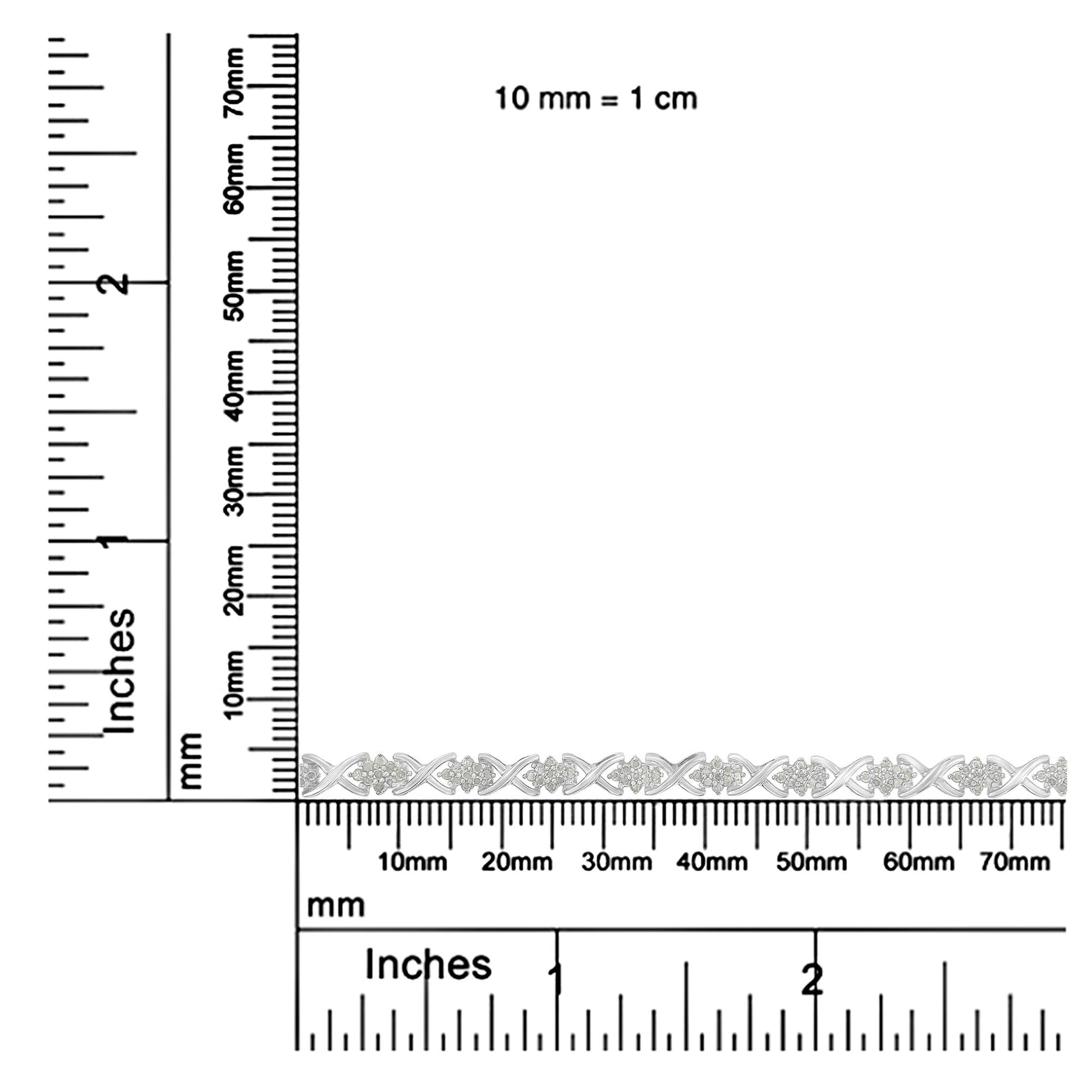 Elegant and timeless, this .925 sterling silver tennis bracelet features 1.5 carat total weight of natural, round, brilliant cut diamonds with a whopping 144 stones in all. The tennis bracelet features diamond-shaped clusters of 9 diamonds with shared prong settings. Each cluster is centered between cursive X shaped links for an x’s and o’s appearance. The 7” bracelet culminates in a box with tongue clasp. This authentic design is crafted of real 92.5% sterling silver that has been electro-coated with genuine rhodium (a platinum-family metal), ensuring it will keep a tarnish-free shine for years to come. This classic tennis bracelet makes a great gift for any special occasion, as well as a great gift for those with April birthdays! Diamonds are thought to give the wearer clarity and illuminate solutions to life’s problems, as well as encouraging abundance, strength, courage, harmony, faithfulness, and commitment. Give her a gift that will perfectly complement her favorite ensemble.