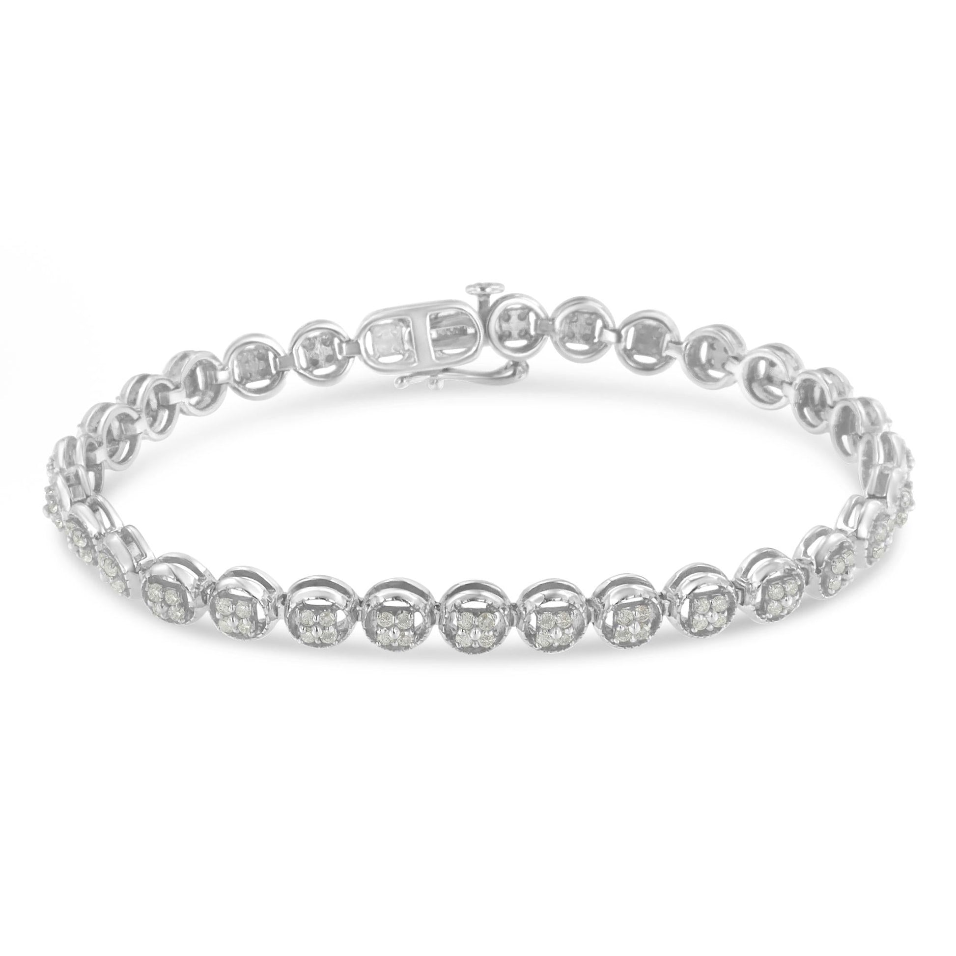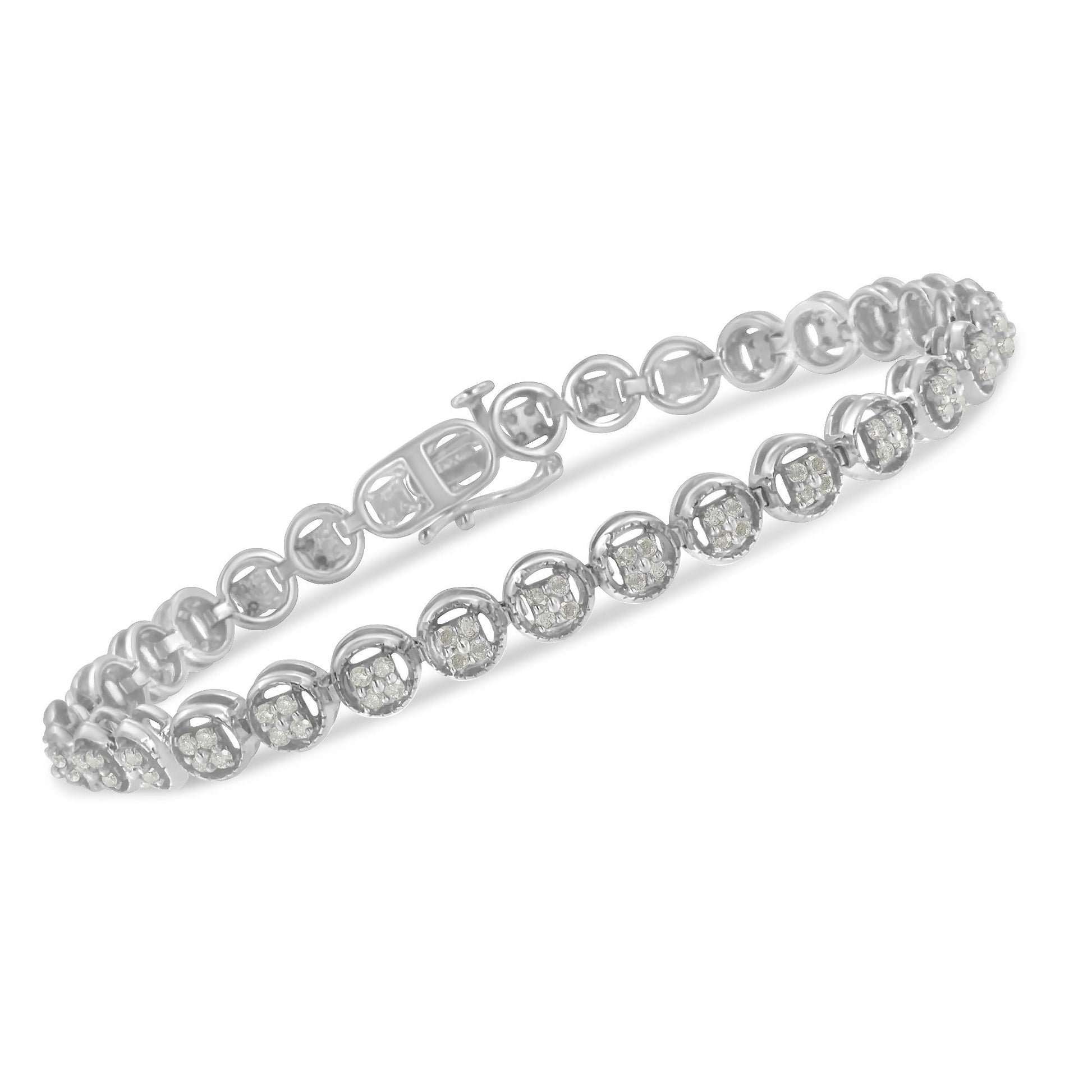 .925 Sterling Silver 1-1/3 Cttw Diamond 7" Open Circle Wheel Link Tennis Bracelet (I-J Color, I2-I3 Clarity)