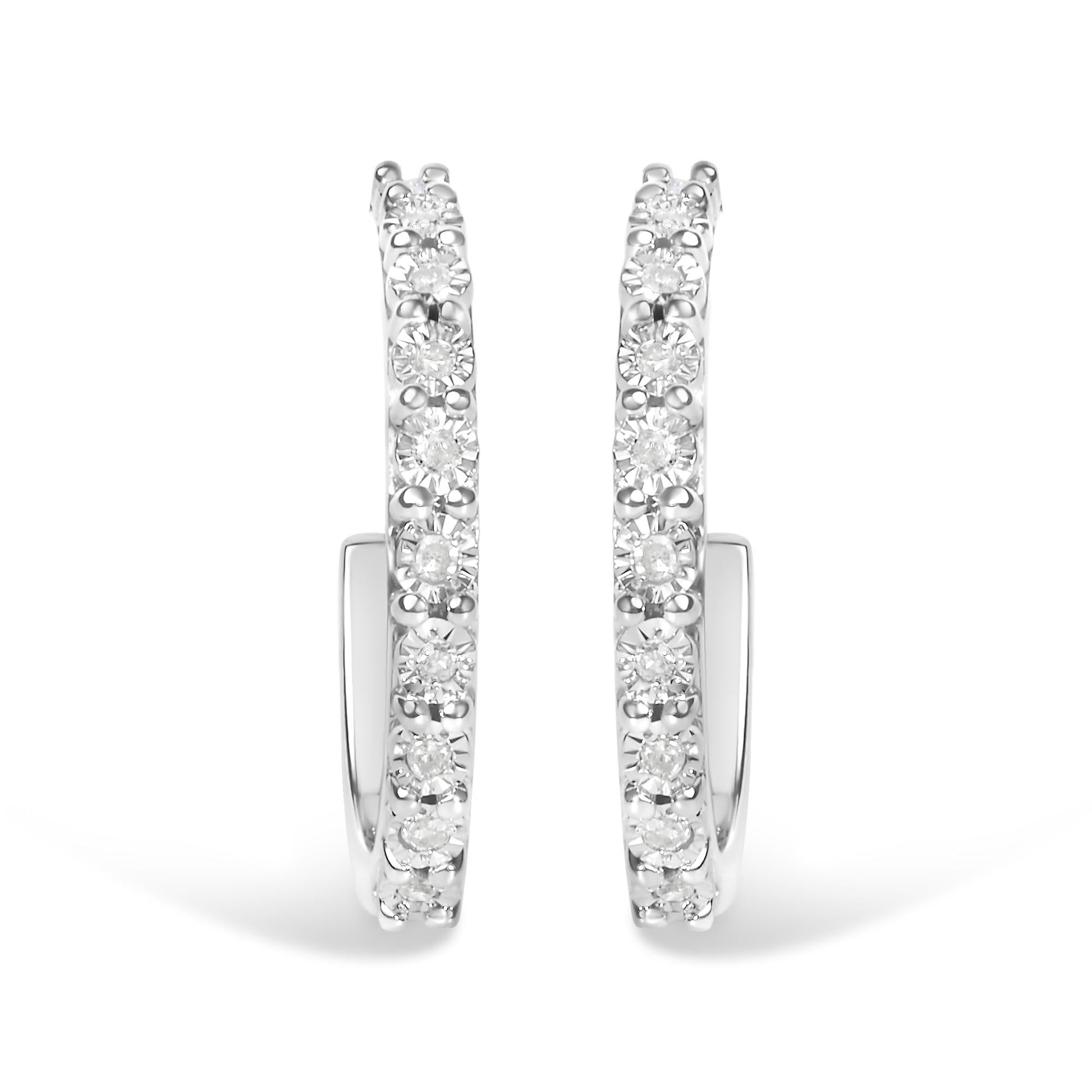 .925 Sterling Silver 1/10 Cttw Diamond Miracle Set J-Hoop Earring (I-J Color, I3 Clarity)