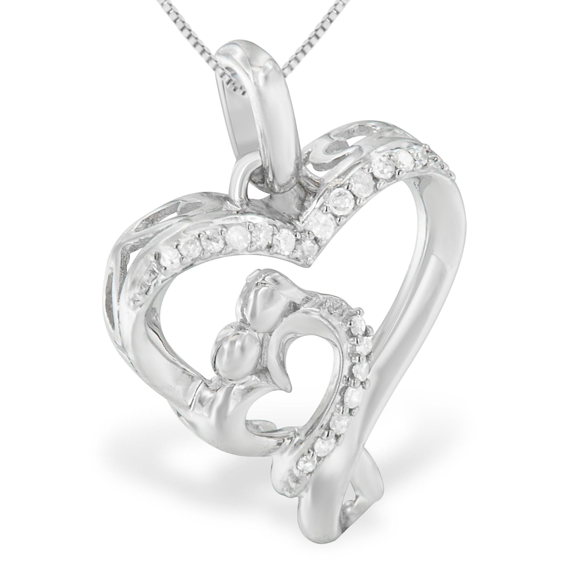 .925 Sterling Silver 1/10 cttw Diamond Mother & Child Double Open Heart 18" Pendant Necklace (I-J Color, I3 Clarity)
