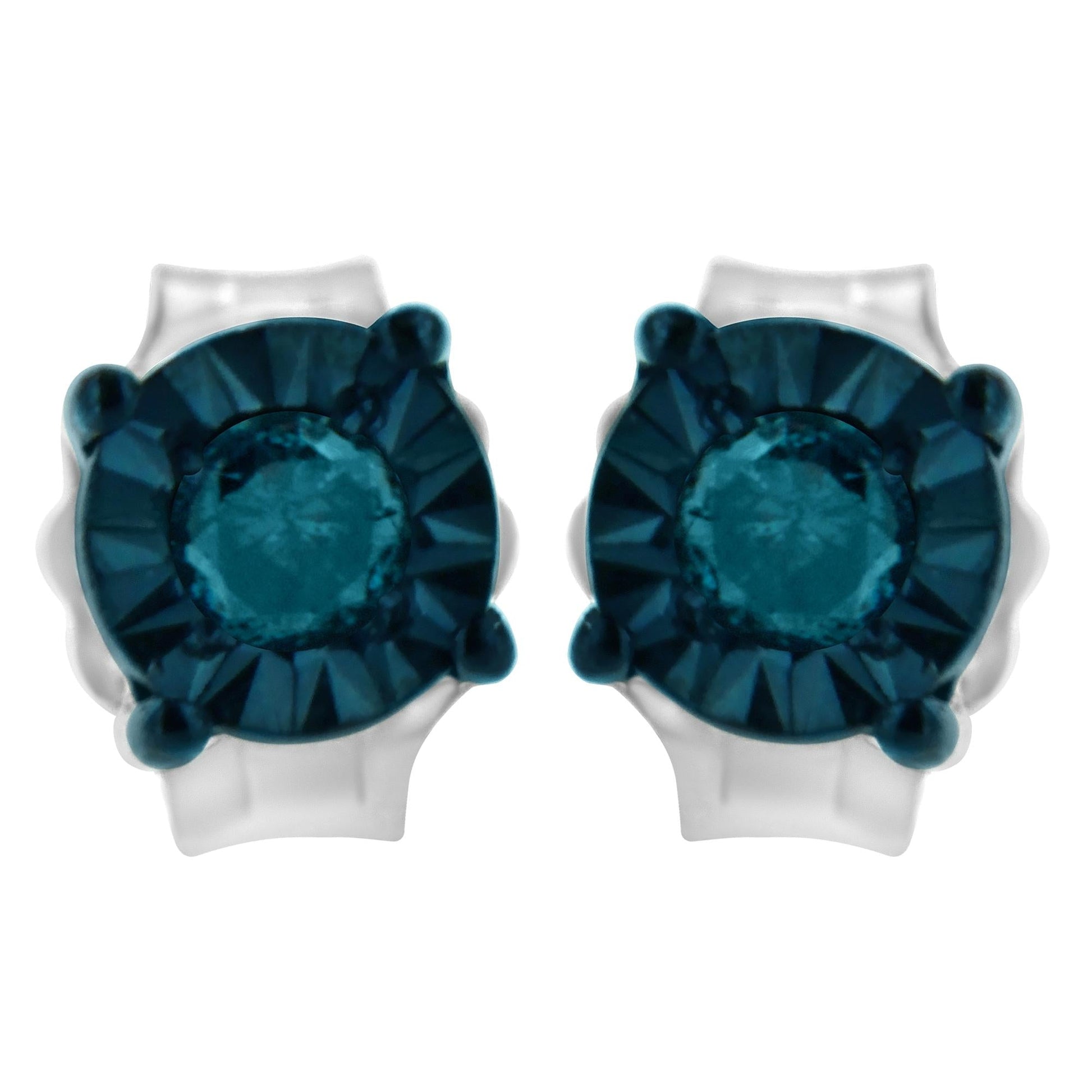 .925 Sterling Silver 1/10 Cttw Round Brilliant-Cut Blue Diamond Miracle-Set Stud Earrings (Fancy Color-Enhanced, I2-I3 Clarity)