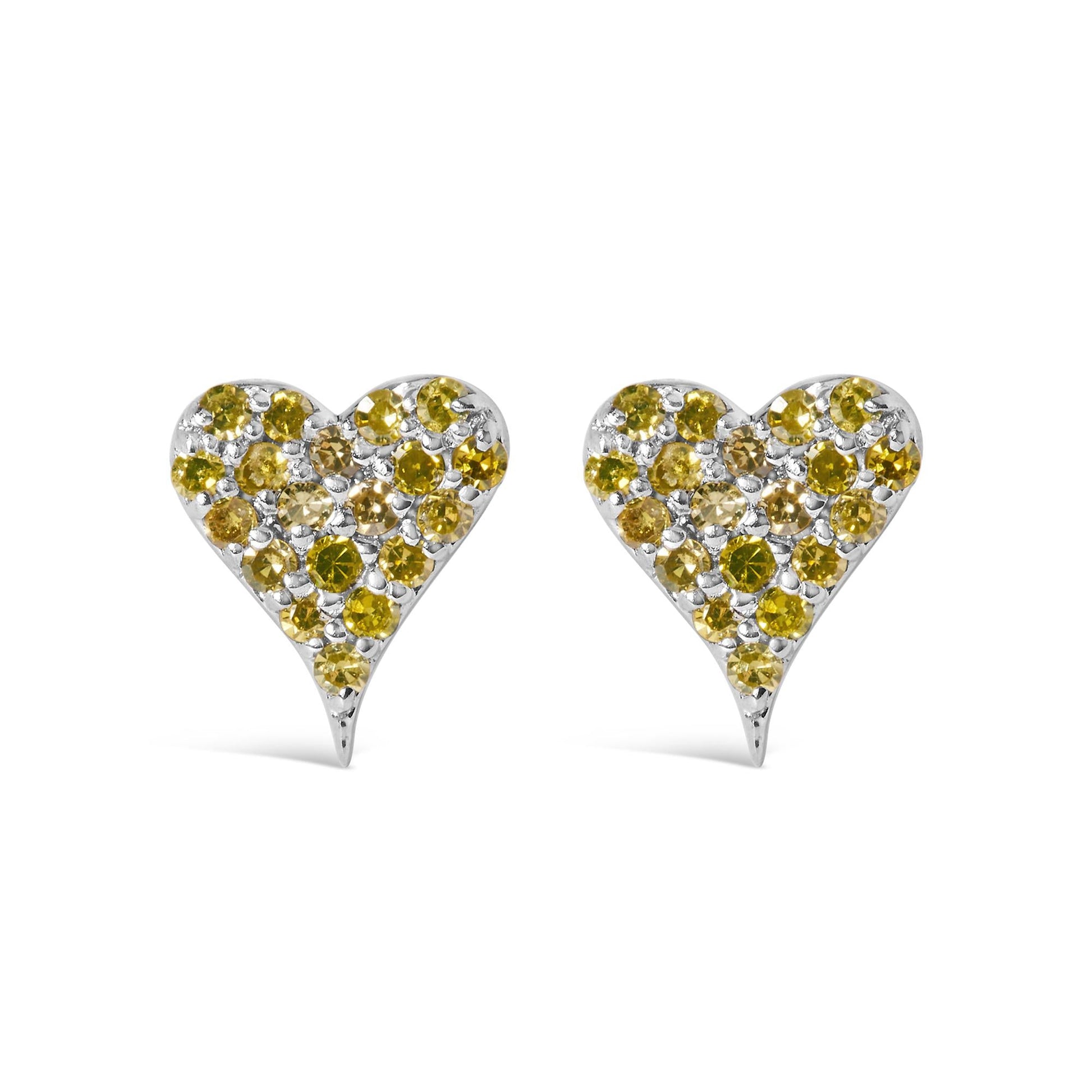 925 Sterling Silver 1/10 Cttw Yellow Diamond Heart Shaped Stud Earrings (Yellow Color, I3 Clarity)